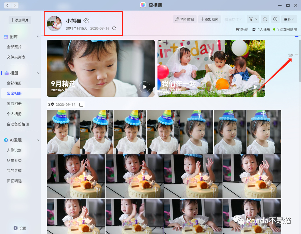 将照片导入极相册之后,我们只需要在人像识别中去设置好宝宝的人像相册,在通过宝宝相册绑定同步人像识别出的照片,极空间便可以将我们宝宝的照片按照年龄段分好,你可以将你孩子从出生到近期的照片都放在这里。除了用于存储,还能作为宝宝的时光屋,偶尔想找宝宝某个年龄段也很方便。