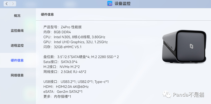 Z423就不用说了,NAS届的“性能怪物”。AMD Ryzen7 5825U的处理器加上4个SATA+4个M.2的多存储池组合,以及10G的万兆电口和专属UPS电源。这一系列参数注定了它的性能将超越市面上绝大部分成品NAS了。不知道这样的性能在极空间的优化下能达到什么程度,很期待呢!后续样机出之后熊猫也会出一篇关于Z423的详细测评,并尝试去压榨它的极限性能。