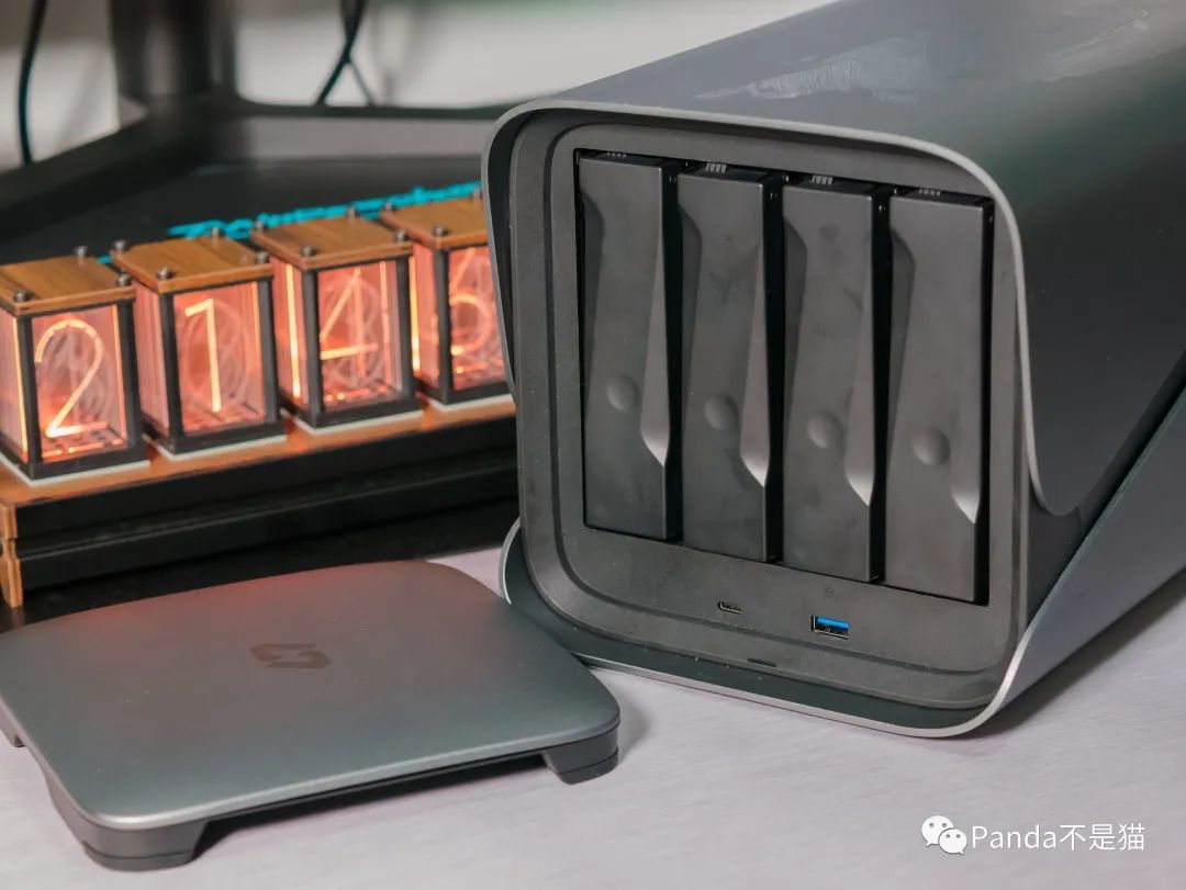 Z4Pro的正面设计与之前的版本保持了一致,采用磁吸前盖。打开磁吸盖可以看到USB3.2 Gen2的C口和USB3.2 Gen2的A口,速度上不管是备份U盘和移动设备中的数据,还是用于外挂多的SATA盘都还不错。