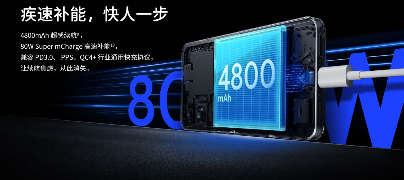 在续航方面,这款手机拥有一块4800mAh的大容量电池,支持最高80W的超快充电,不仅能够轻松续航一天,并且能在半小时之内就能充满,体验十分不错。