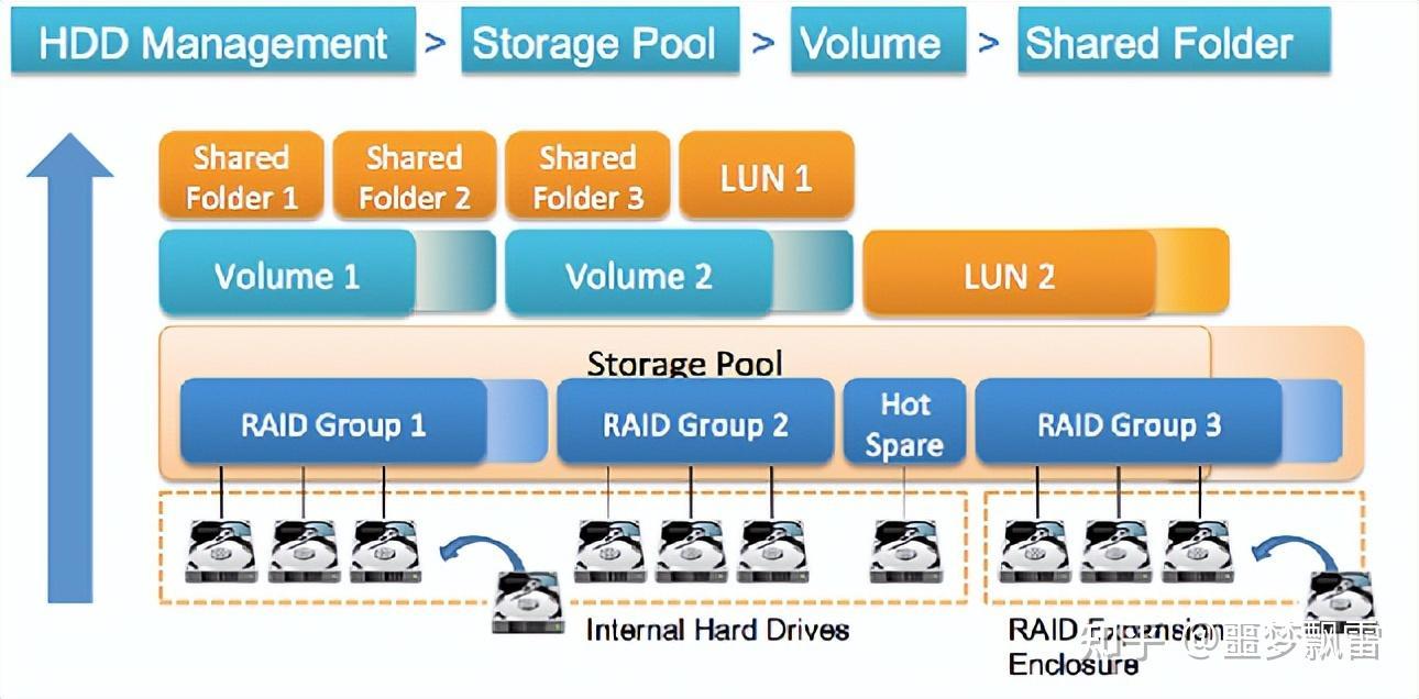 初次接触NAS的朋友可能会对存储池与存储卷这两个奇怪的名字摸不清头脑,实质上这是威联通系统中的上下层级文件结构,这里简单跟大家一说就能明白了。