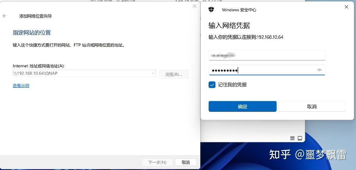在Windows“此电脑”中,右键单击空白处,选择“添加一个网络位置”。连续点击“下一步”,直至出现输入地址的界面。 在这里,我们可以输入访问地址和共享文件夹名称,然后输入NAS的管理员账号与密码。