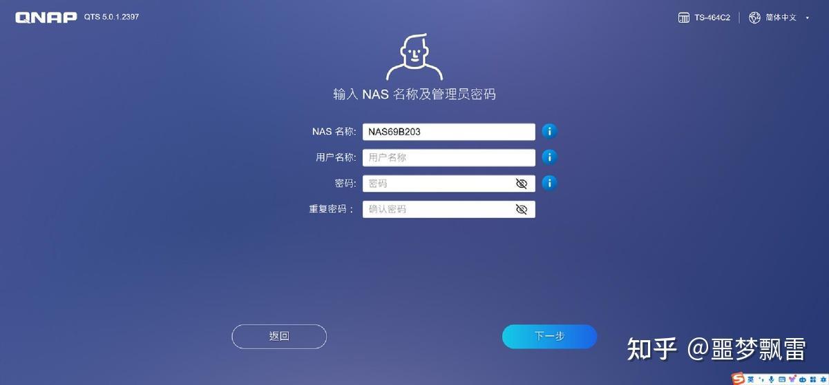 接下来要设置登陆NAS用的账号和密码,这个账号密码我们一定要保存好,这就是以后管理NAS权限最高的管理员密码了。