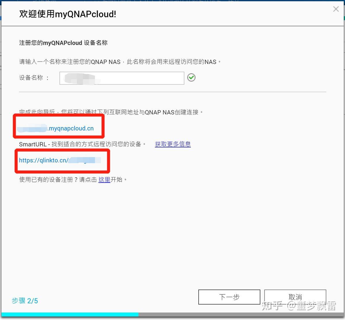 接下来设置一下这台设备的名称,同时这也是我们用来访问NAS的前置域名: