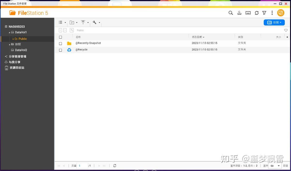 此时打开File Station,发现系统已经为我们创建好了Public这第一个文件夹,文件系统已经正式生效了。