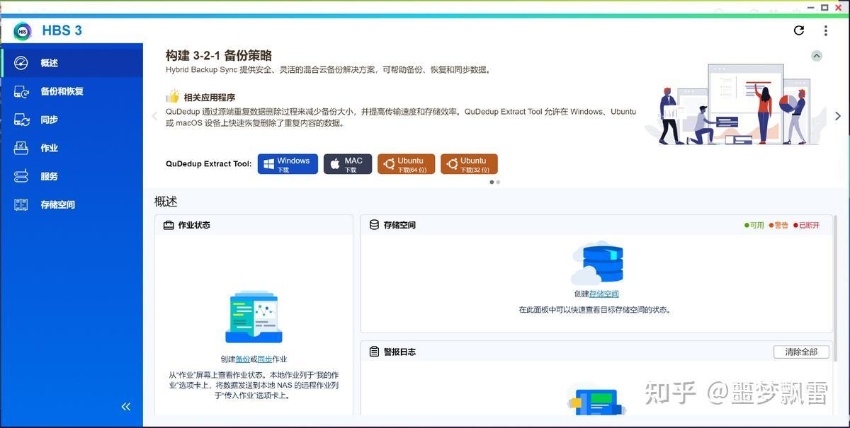 其中比较推荐的当选HBS3,这是威联通官方推出的备份套件,有了它,即使我们没有组建RAID阵列,也能对关键的数据进行本地或者异地备份,实现“3-2-1”分级备份策略,非常方便: