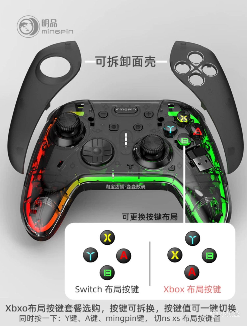 因爲上個手柄不能解決我多設備的手柄鍵位問題,和上個手柄一樣,這款雖然也是switch手柄鍵位,但是這款可以客製化,特別是鍵位方便ABXY可以自由換鍵位,完美解決了我的手柄需求,還可以鍵位校正,就是對應switch的A鍵鍵位和功能在右邊,對應xbox的A鍵鍵位和功能在下面,不過呢,這個我這個手柄是xbox和2.4g接收器的套餐,打開右邊的可拆卸面板就可以看到,一個2.4g接收器以及可拆卸的按鈕,根據自己的設備進行補充,默認的是switch鍵位,如果想要xbox鍵位就直接替換即可,功能鍵位也要進行校正,就可以完美使用了。
