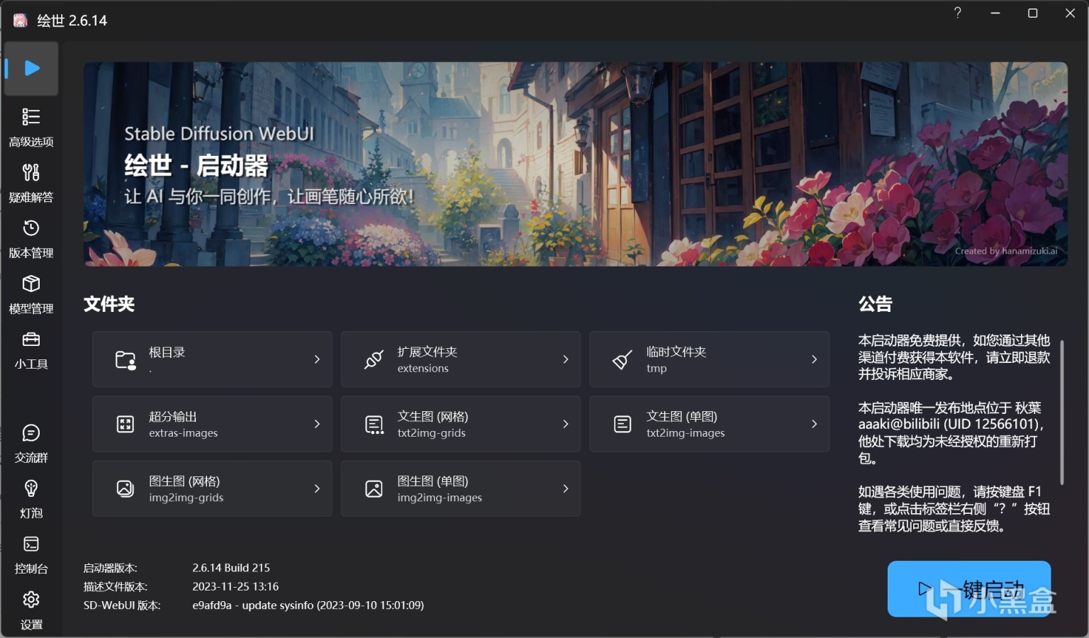 这里要首先感谢B站大佬秋葉aaaki,感谢大佬为大家带来了“绘世”一键整合包,直接下载适合A卡的整合包就可以轻松开始AI绘画了!