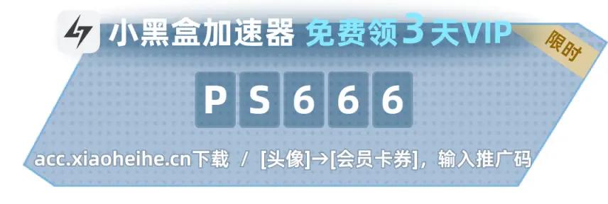 小黑盒加速器輸入PS666可白嫖會員3天(共計6天)+會員優惠劵