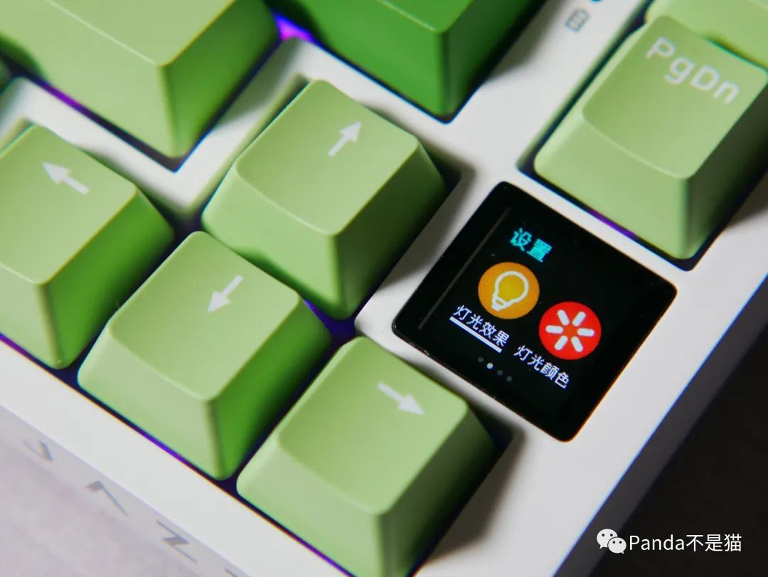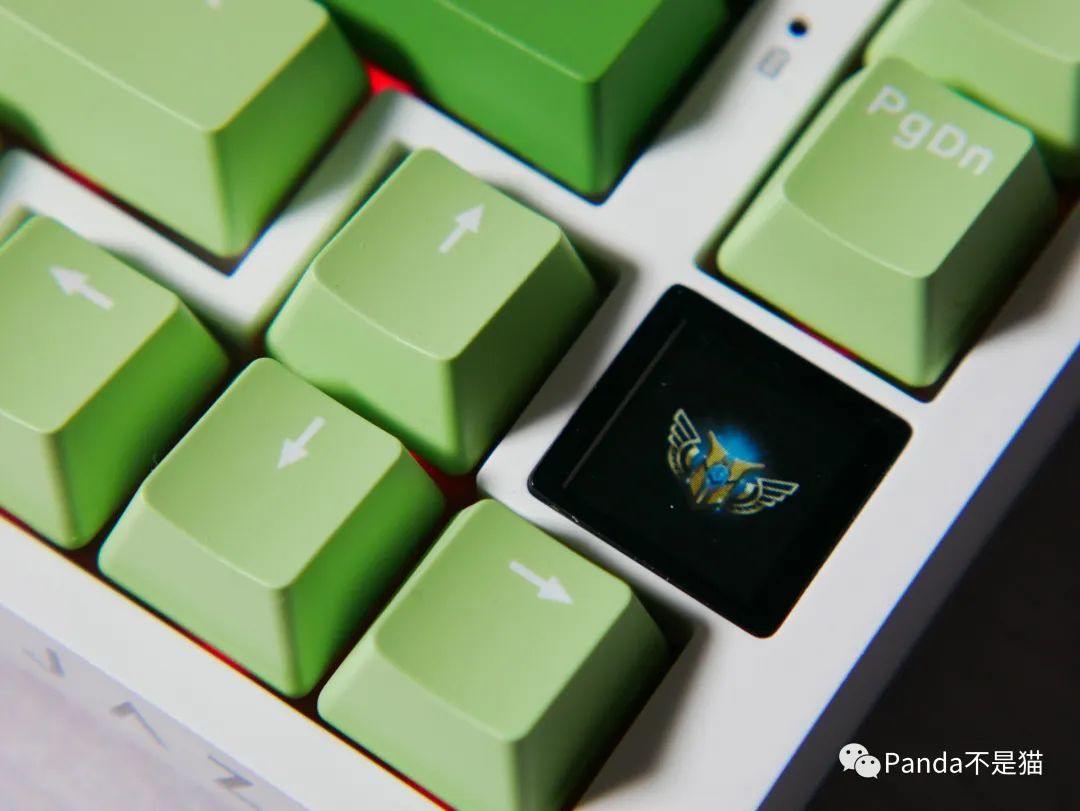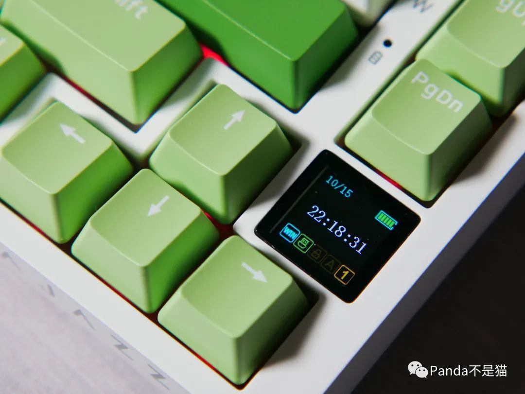 无疑,黑爵AK820 Pro最大的亮点在于0.85寸的TFT彩屏。这块彩屏不仅能显示时间、电量和当前连接模式,还支持自定义屏幕显示内容,给用户带来更多个性化的选择。屏幕位于方向键→的上方,只占用大约一个键帽的空间,稍微宽一些,以确保使用时的观感舒适度。这个彩屏的存在让黑爵AK820 Pro在外观设计上更显独特,也增添了一份玩法和便利性。