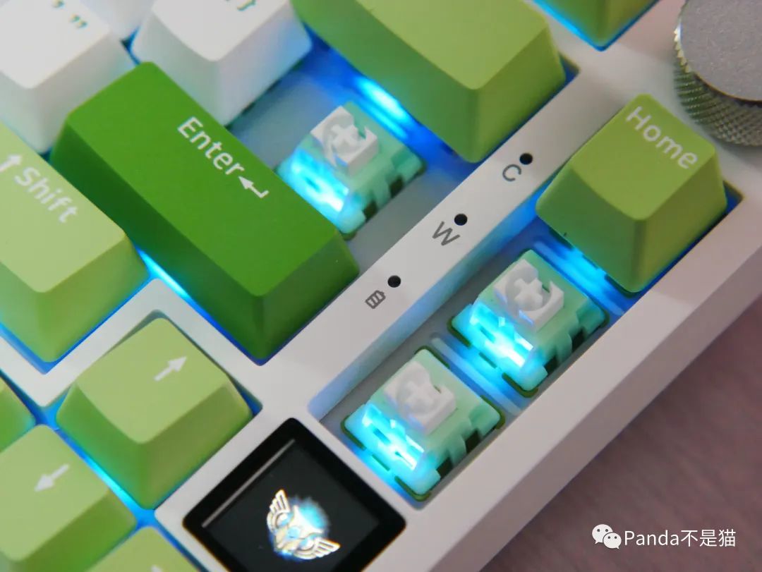 黑爵AK820 Pro采用75%配列的布局,这使得键盘整体更加小巧,方便外出携带,并且在日常使用中节省了桌面空间。而黑爵一直很喜欢在小配列上加金属旋钮,旋钮的设计不仅能快速调节音量大小,更可以随机进行静音设置。