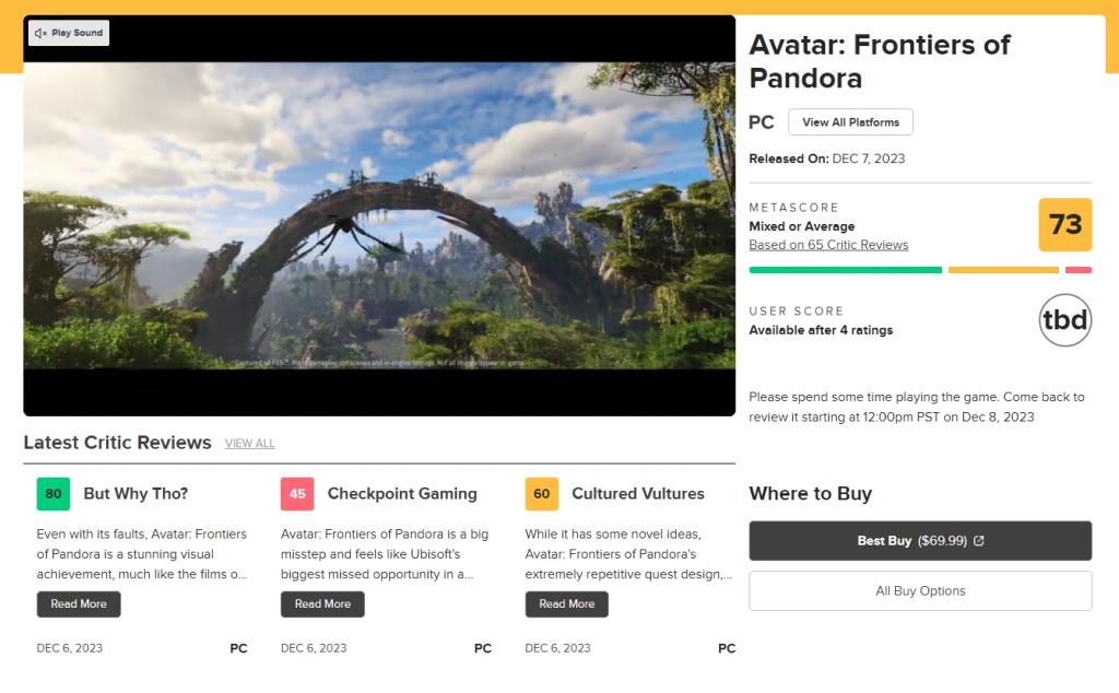 育碧《阿凡達:潘多拉邊境》發行 測評者認爲其缺乏驚喜中規中矩