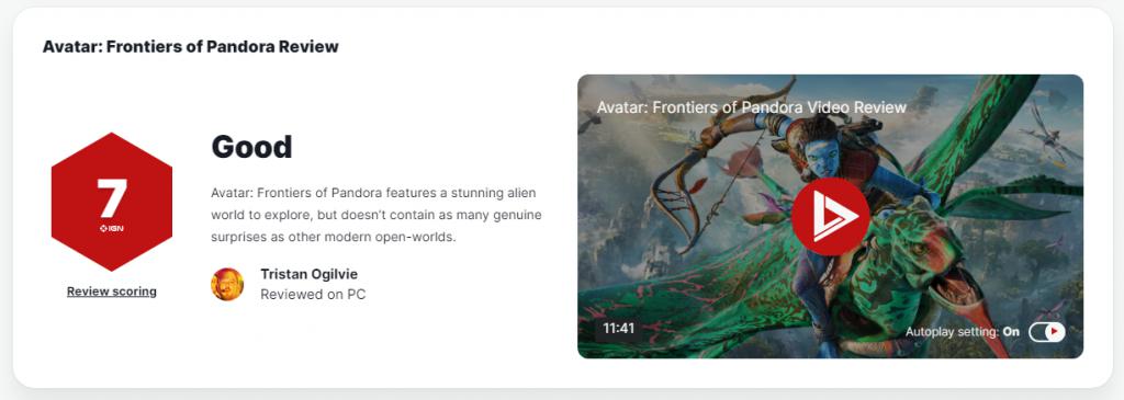 《阿凡達:潘多拉邊境》展示了令人驚歎的外星世界和獨特的導航系統,玩家可以摧毀敵人基地、完成支線任務和探索異國動植物。然而,遊戲的戰鬥相對單一,任務設計顯得有些重複,而環境除了視覺上的輝煌外,缺乏引人注目的驚喜。總體而言,雖然是一款出色的射擊冒險遊戲,但整體體驗相對常規,缺乏引人深思的元素。
