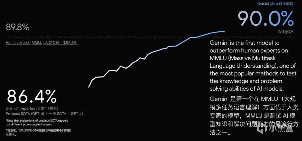 而Pro版本已經能夠打敗OpenAI的GPT3.5,Ultra更是當今最強多模態大模型,對標GPT-4,能夠全方面碾壓現有的AI大模型,在MMLU(大規模多任務語言理解)中能夠超越90%的人類專家,也是目前準確率最高的大模型!
