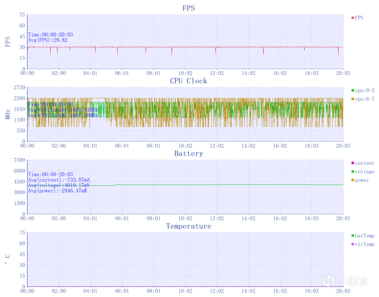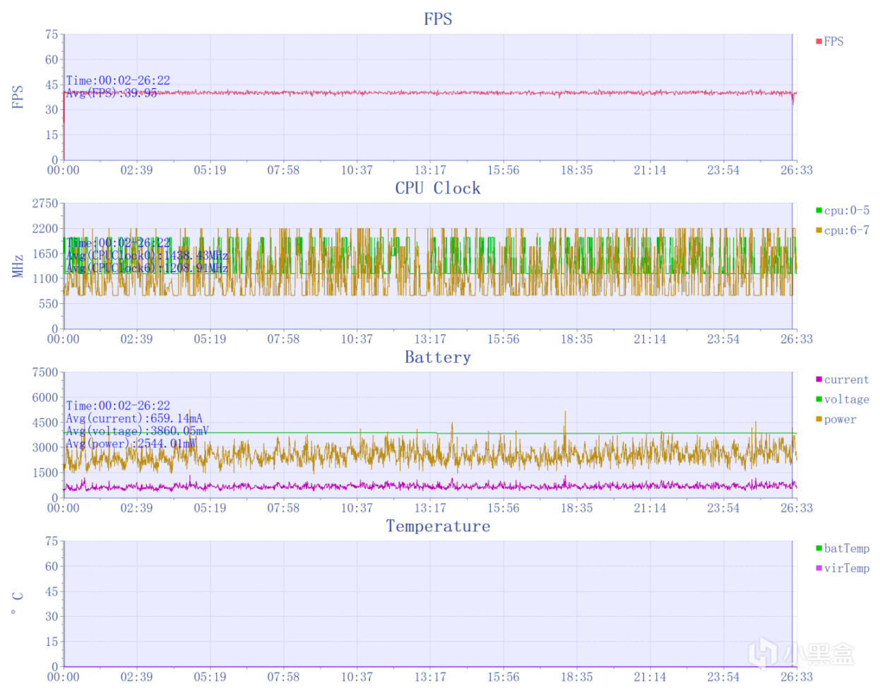 30分钟和平精英,均衡画质超高帧数,平均帧率39.95,依然稳如狗,平均功耗2.5W。