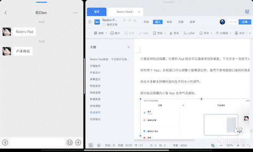 小窗支持贴边隐藏;分屏的App组合可以直接添加到桌面,下次点击一次就可以打开组合好的两个App;无极窗口可以调整小窗横竖比例,虽然不是电脑窗口级别的高度自定义,但也大多都支持横向竖向及不同大小的调节。