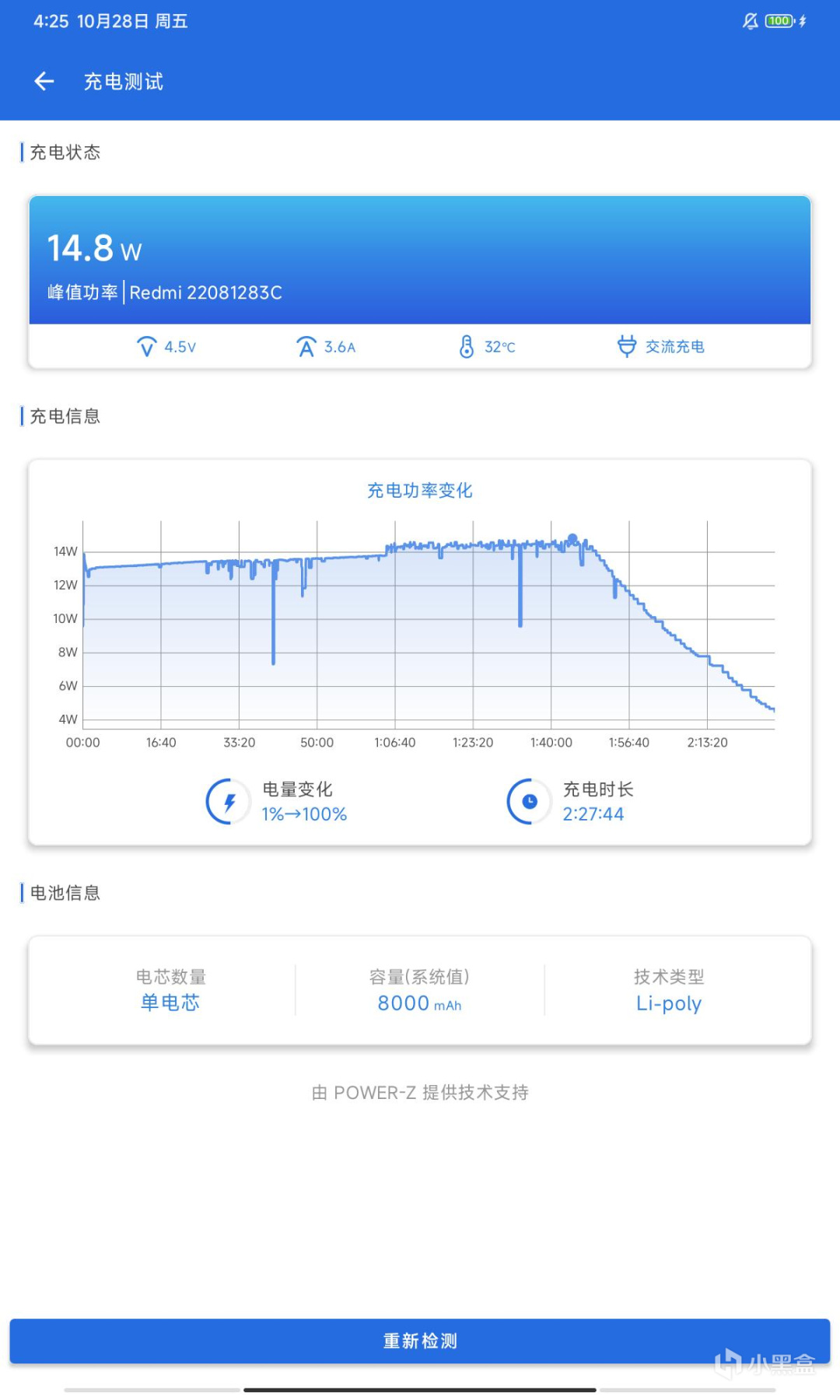 实测最高充电功率达17.6W,15W以上保持的还是比较持久的。