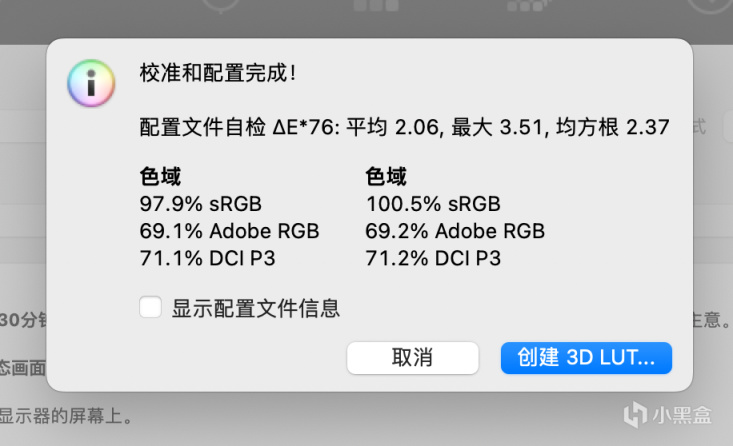 鲜艳模式测试,sRGB色域97.9%,色域容积100.5%;DCI P3色域71.1%。