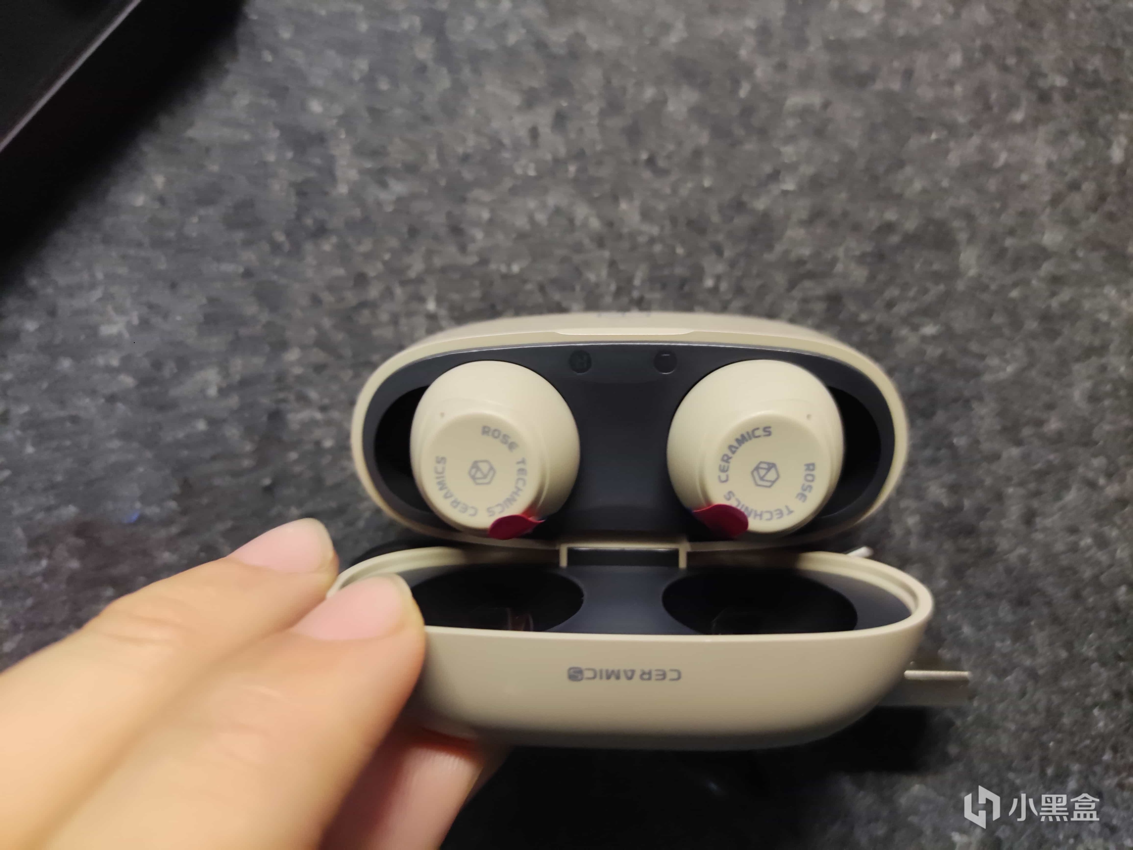 拿出耳机,可以看到耳机收纳仓光面的设计,整体颜值还是很高的。