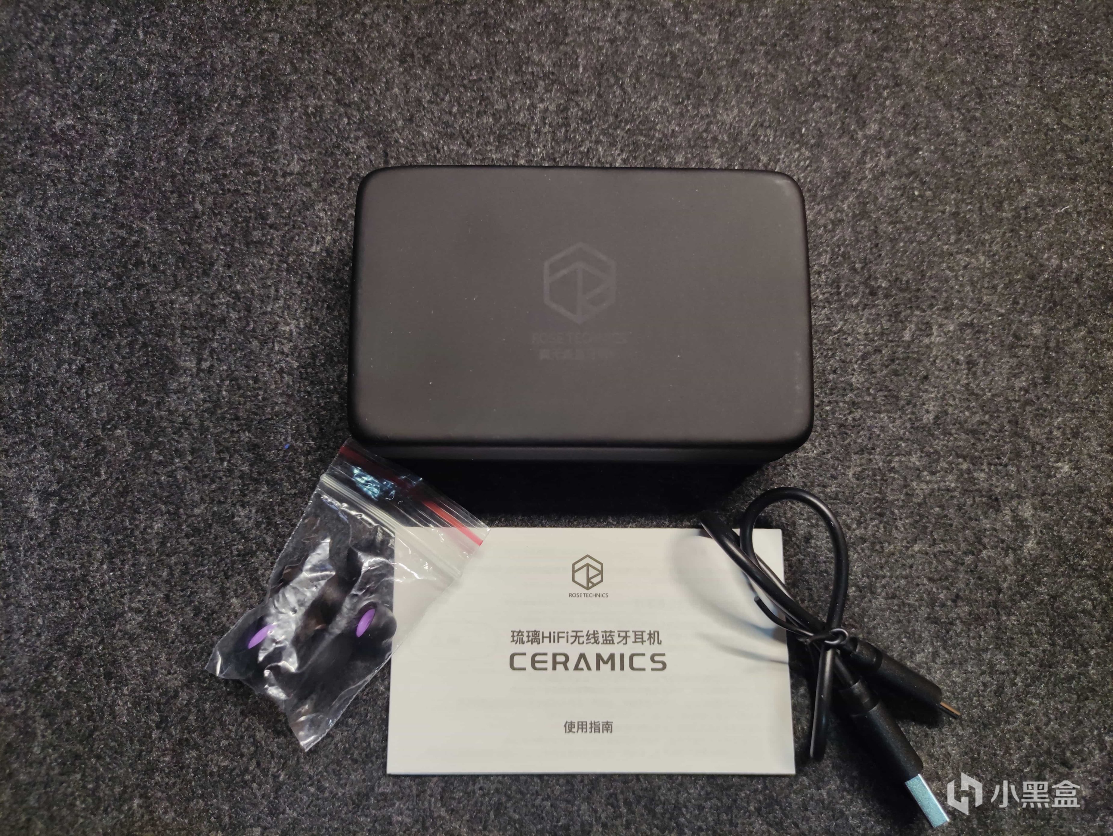 全家福:耳机收纳盒(耳机在里面)、说明书、数据线、一套不同大小的耳塞。