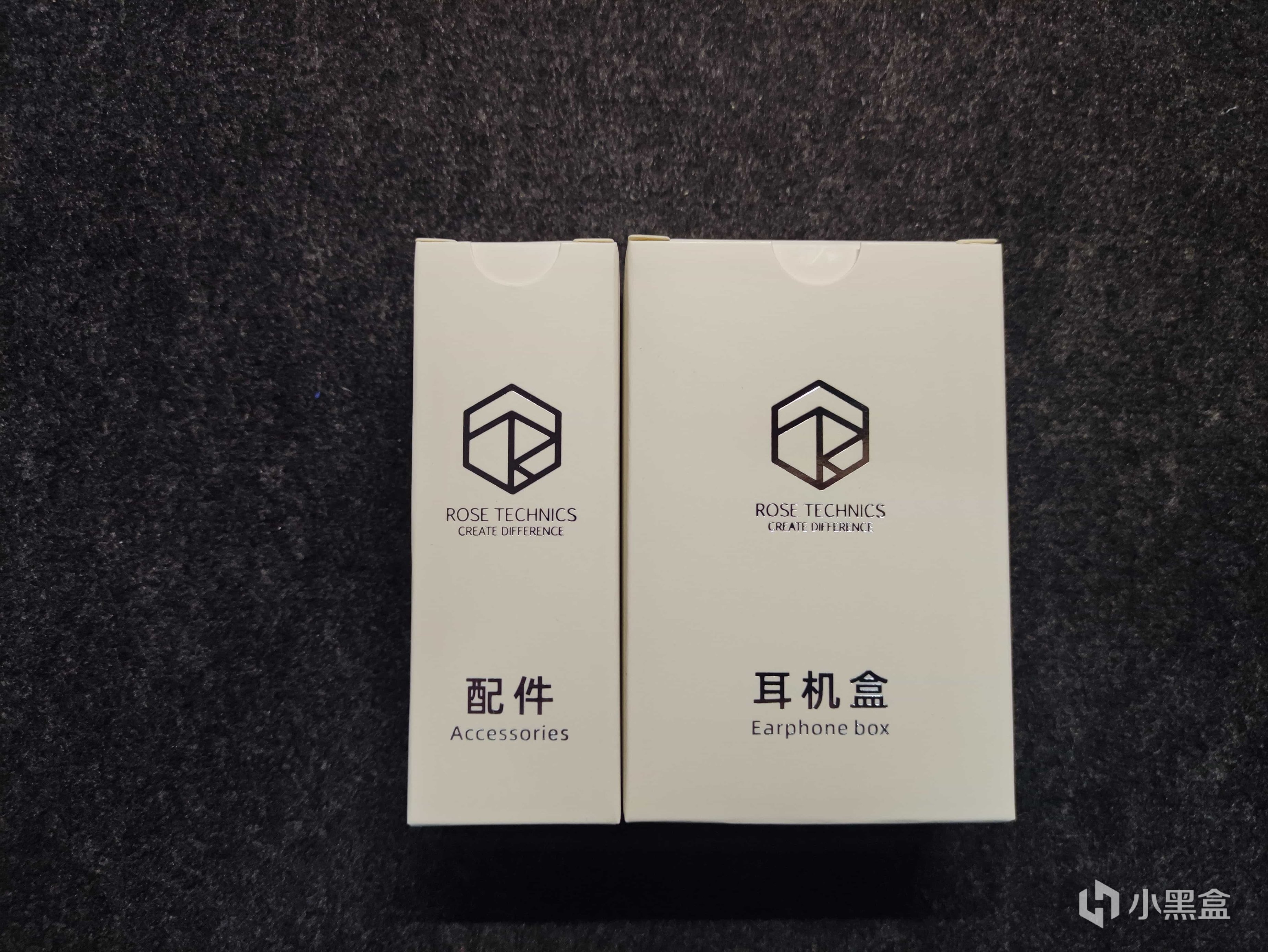 拆开外包装之后能看见里面的两个盒子,一个装着配件一个装着耳机。