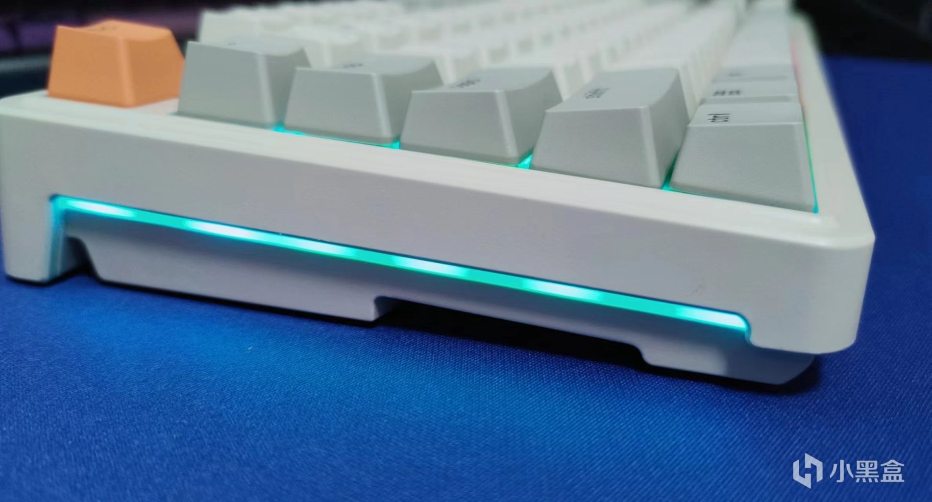 键盘的左右两侧各有一条led灯带,以及些许凹槽设计,科幻废土的感觉更是浓厚了一些。整体颜值方面还算不错,非常适合那些喜欢搞电竞氛围感的同学入手。