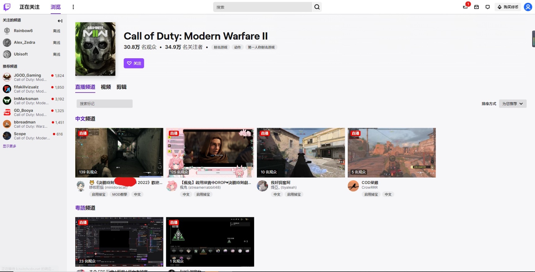 在“所有掉宝”中找到“现代战争Ⅱ”,点击“参与中的直播频道”。