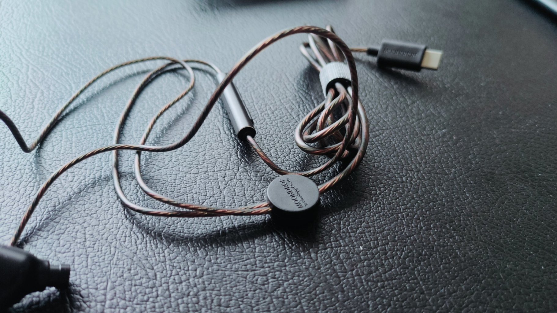 這次耳機採用的是type—c的口,所以是帶麥的,你想在空閒之餘打打遊戲還是不錯的的。“DSP”方面通過USB—C接口中的音頻信號進行數字信號轉換模擬信號之前,對其進行濾波器處理,來解決物理手段難解決的問題。水月雨對於DSP的優化可以看出水月雨在其身上花費的心思。