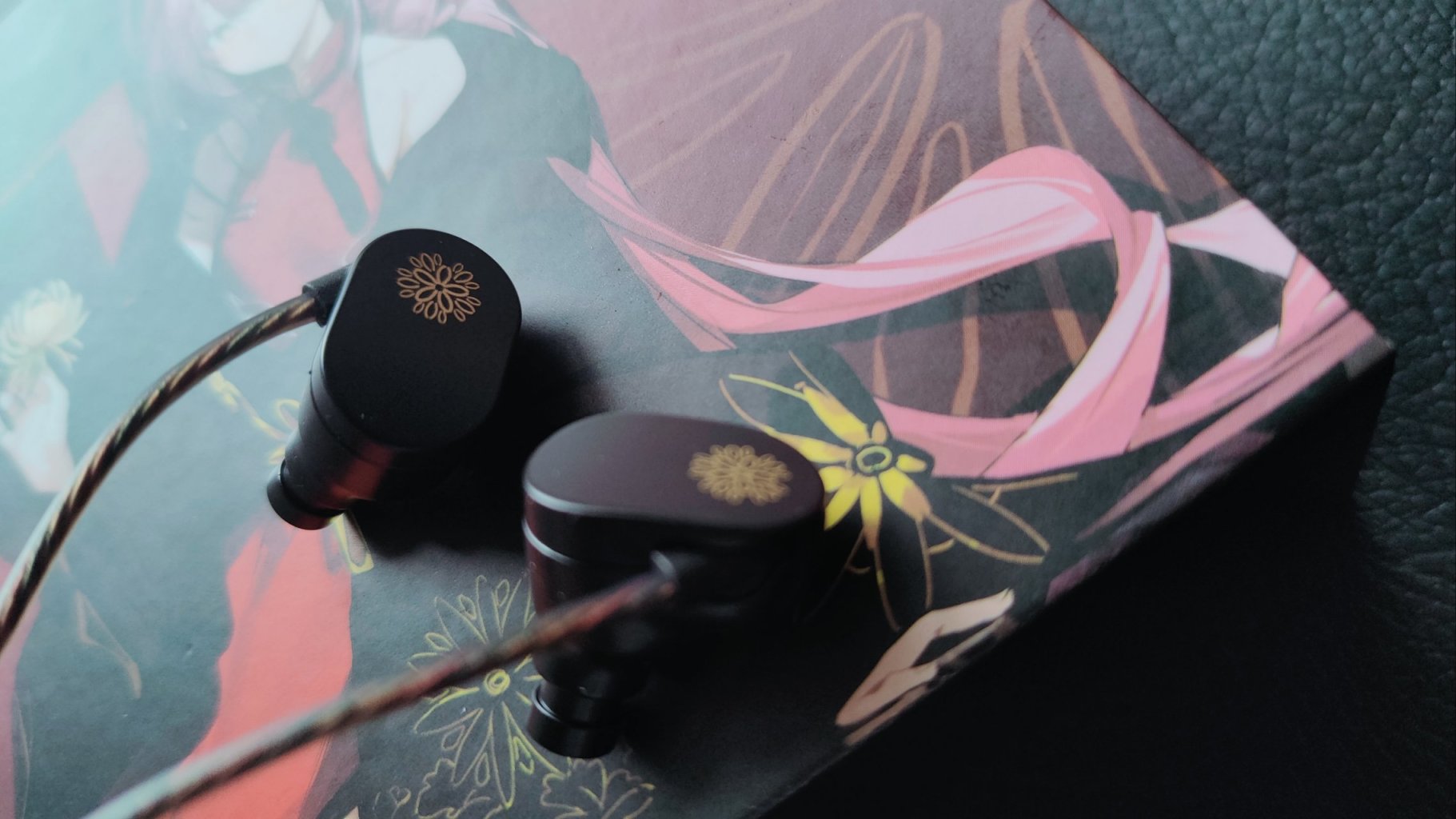 顏值方面,我覺得你可以相信水月雨。菊的外觀及其的簡約,但是並不單調,反而給人一種高級大氣的感覺。耳機的腔體是合金熔鑄而成,整體上十分富有質感,黑色的耳機間使用菊花作爲點綴。