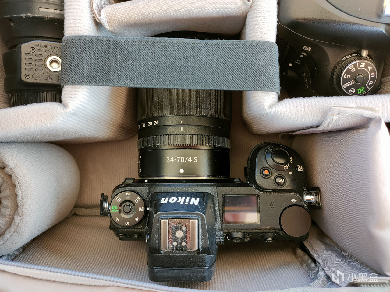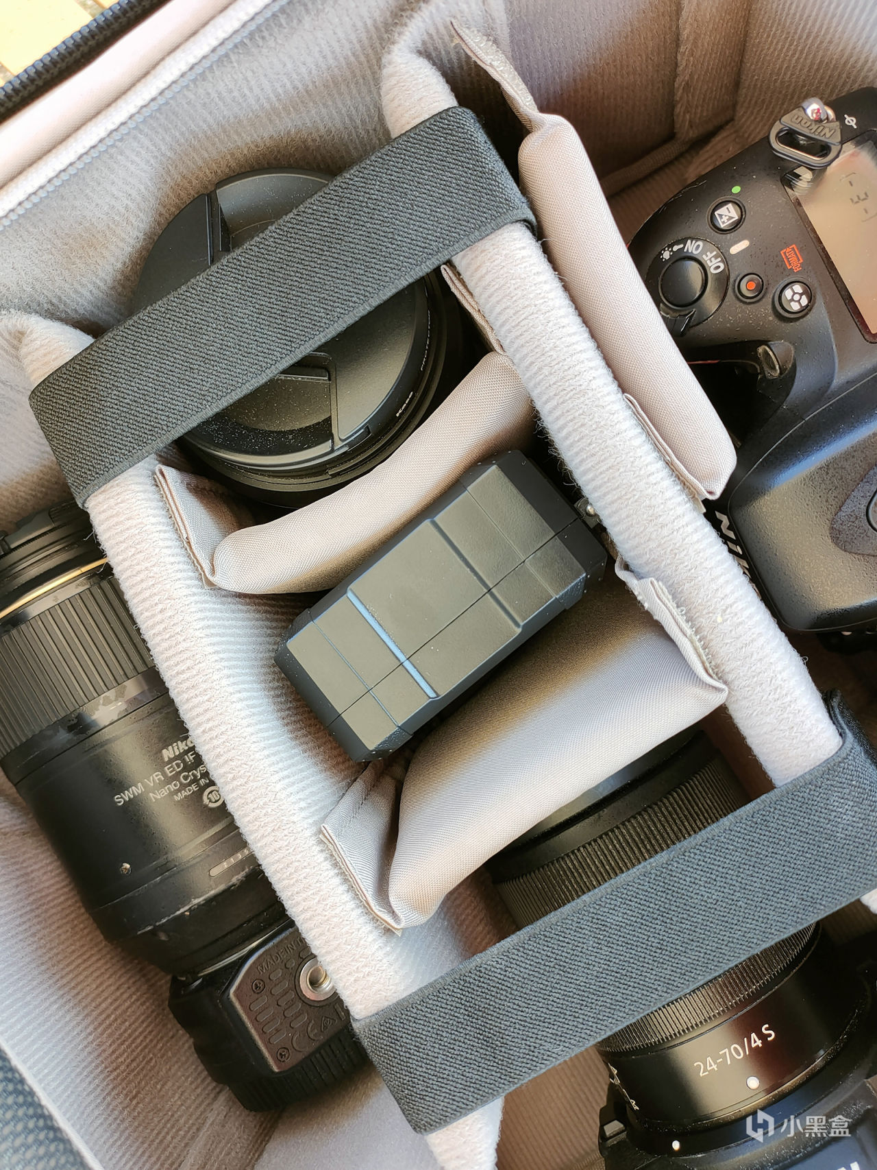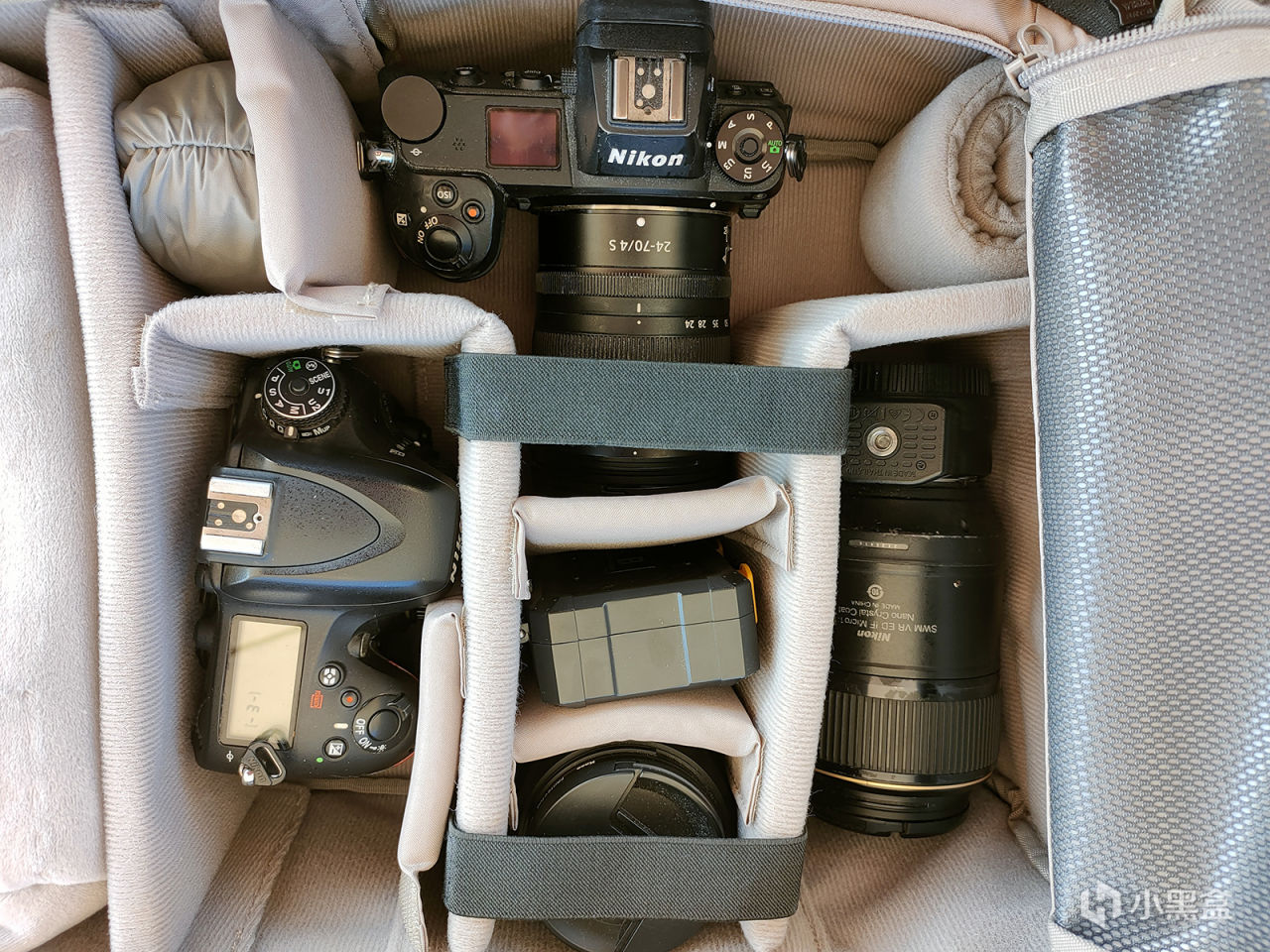 不多说,直接说结果。我的两机三镜轻轻松松就放进去了,还有不少的空间可以松动的。最底部的是我的105微距+F转Z转接环,也就是老尼康单反镜头转尼康微单口的转接环。官方的,拍摄、连拍甚至静态视频都绰绰有余。但拍视频不行,扯风箱非常严重,逼着我又买了2470F4。