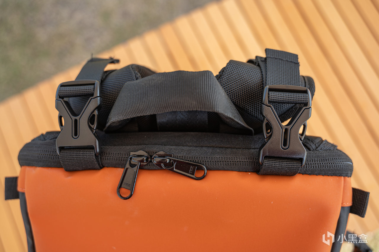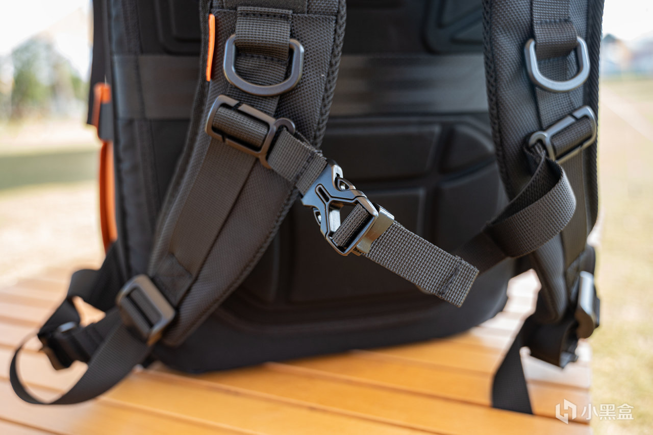 肩带那边也有拉紧扣,这种设计对于喜欢爬楼的玩家来说非常合适。毕竟爬楼就是带着相机,轻便的三脚架去突破某些城市有趣的角落,少不了攀爬甚至“钻”,要是包包松松垮垮的话,轻则探索失败被发现被劝退,重则发生不必要的损失。