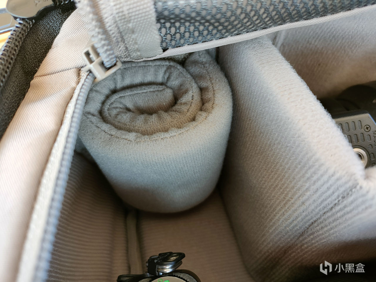 顶头部分,是一大块的收纳空间,里面可以塞的东西不少,甚至可以放进去APS-C画幅微单+饼干头。