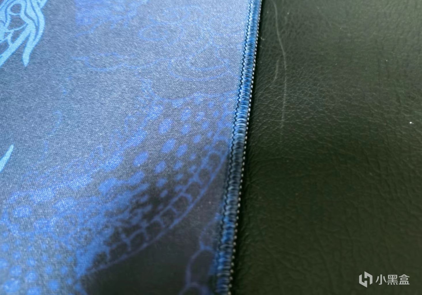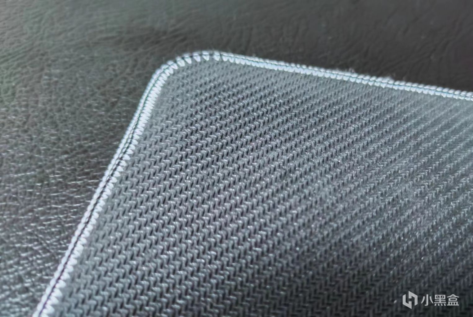 包边大概3mm,包边略低于表面,如果你平常需要大幅度拉枪那也是并不影响的。包边呢整齐细致,并没有什么毛边的出现。厚度方面呢因为为5mm,厚度算的上还不错,如果你的桌面有些许小凹坑,可以很好的盖住,滑动鼠标不会有什么不适感,可以很好地进行铺平,整体使用起来十分丝滑,平整。并且黑著一代升级了鼠标垫的中间层,提供了更好的下陷空间和不错的回弹力度,可以吸收鼠标整体的震动,鼠标的移动上更加稳定更加丝滑,精度也可以提高,并且也可以提供不错的支撑力,可以有效降低玩家在长时间游玩的劳累感。
