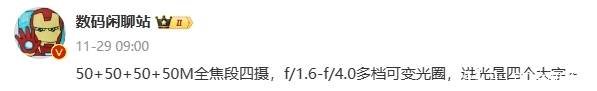 ◆ 后置:50MP主摄(索尼LYT900)+50MP+50MP+50MP 全焦段四摄;