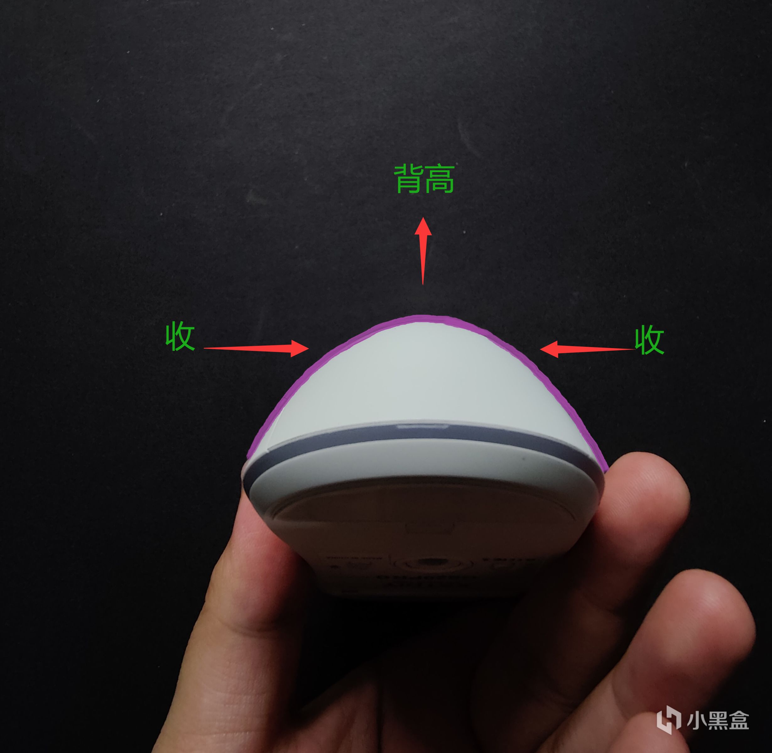 相较于罗技G703的模具缩小后的鑫顺天820pro抓在手上有更多的操作空间,很多工学鼠的背部是下坡式的设计,还有很多鼠标背部会给人一种很宽的感觉,但是820pro完全相反他的背部是更接近拱形的设计,顶点感觉会更高也更靠后,两边是往里收的感觉,实际握感就不会有屁股很大很宽的感受,反而感觉在手里是很圆润的。当然如果你不喜欢这种激进的高背手感,也是提供另一个低背一点的后盖可以替换。