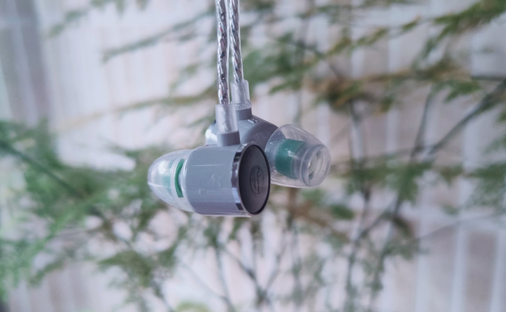 耳机方面采用了人体工学的设计,斜插式的入耳方式,符合绝大部分人的耳道佩戴。耳机外壳采用了金属,整体看起来简约精致,同时还有一抹绿色点缀其上看起来充满生机,耳机的背面采用了滴胶的设计,竹林鸟的LOGO就在其上。