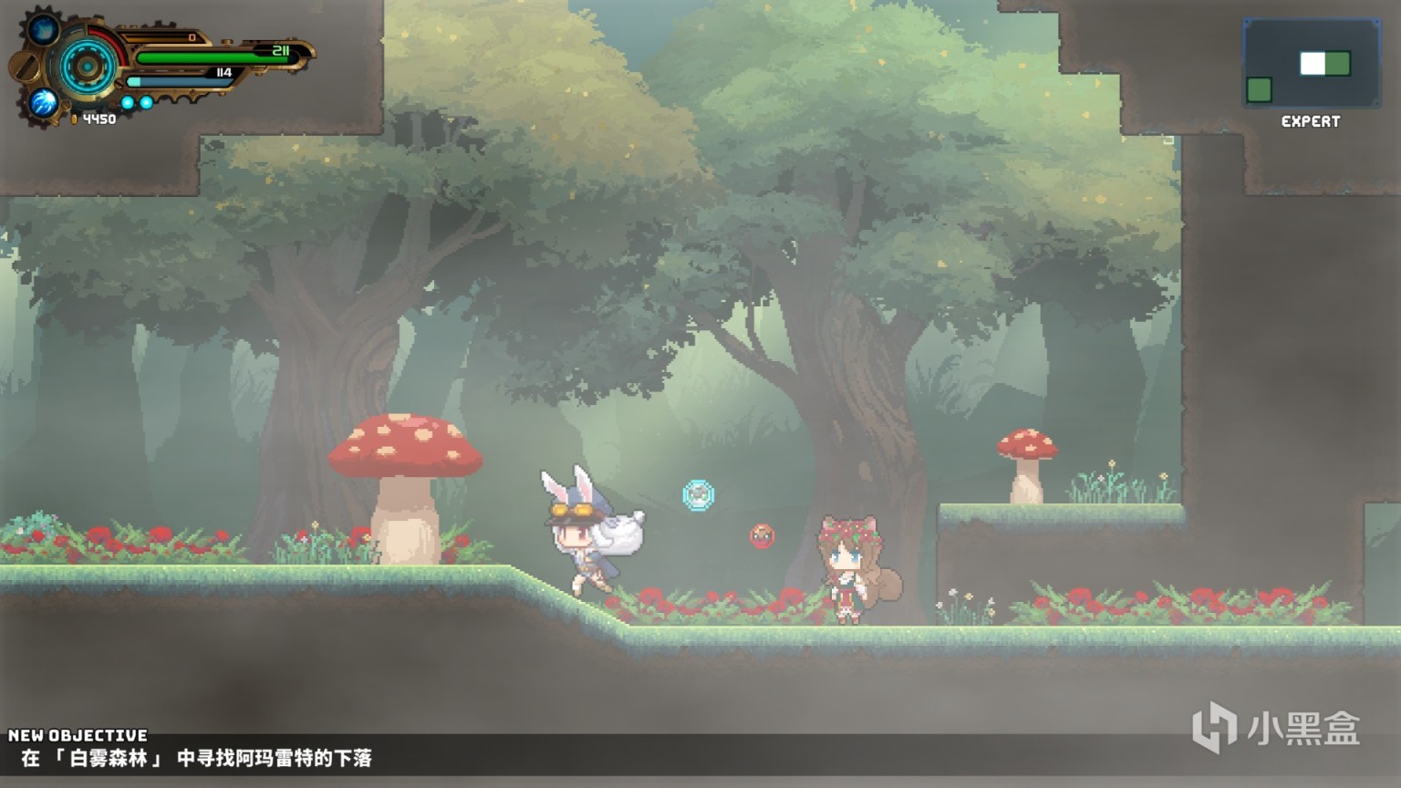 常玩類銀河惡魔城平臺遊的行家都知道,小成本的此類遊戲地圖很喜歡用方格式的地圖,簡單明瞭地展示內容,《Rabi-Ribi》就是其中的佼佼者,用簡單的框架與表現融會了在平臺遊戲中對stg彈幕動作的追求,還有充滿宅氣的對兔子二次元的執念,遊戲內容卻十分硬派,像方形地圖的直角,很有難度的刺激。《TEVI》延續着這樣的情愫,將方形的四角磨圓,以更精美的畫面,將豐富的遊戲世界展出。