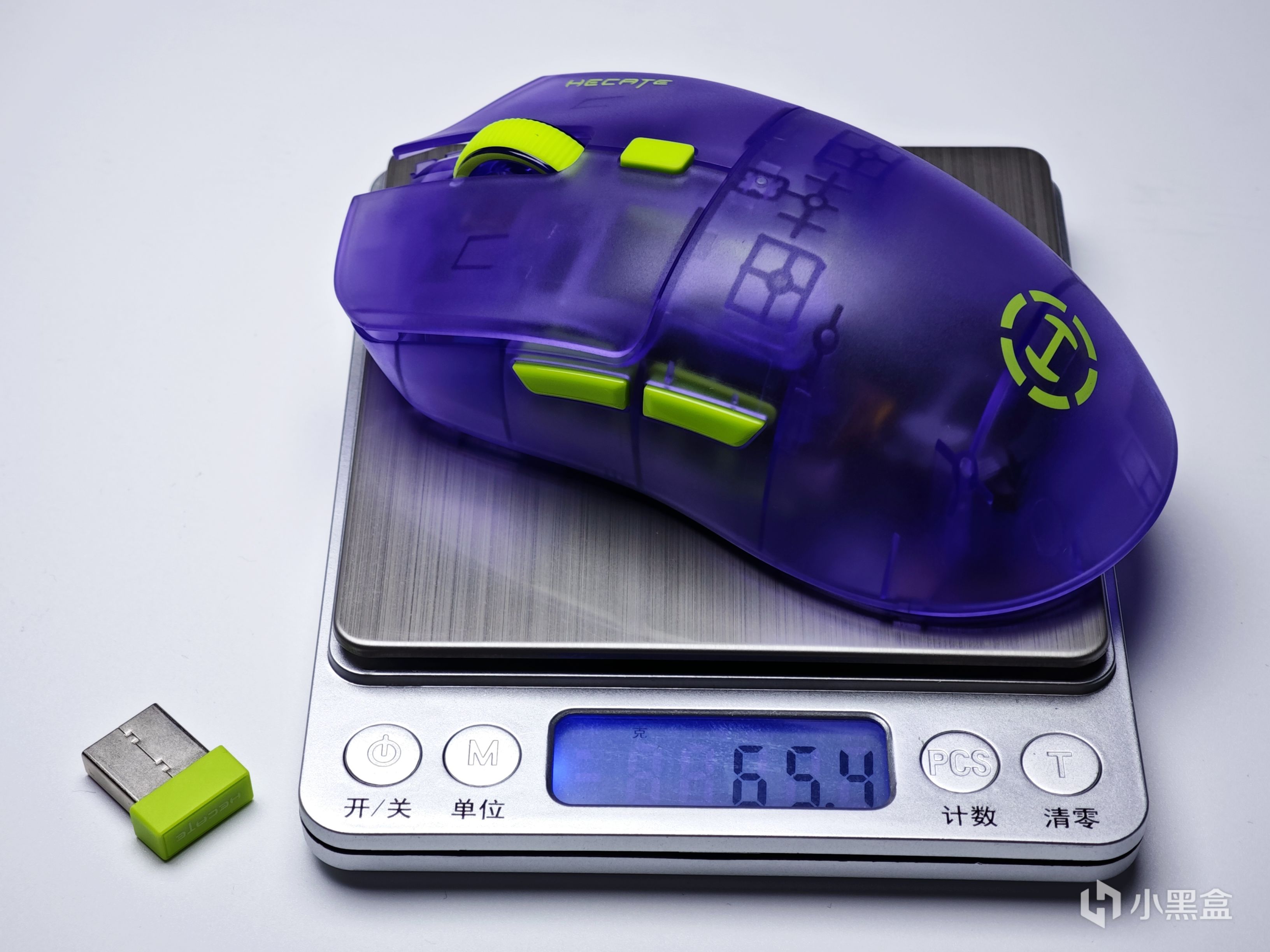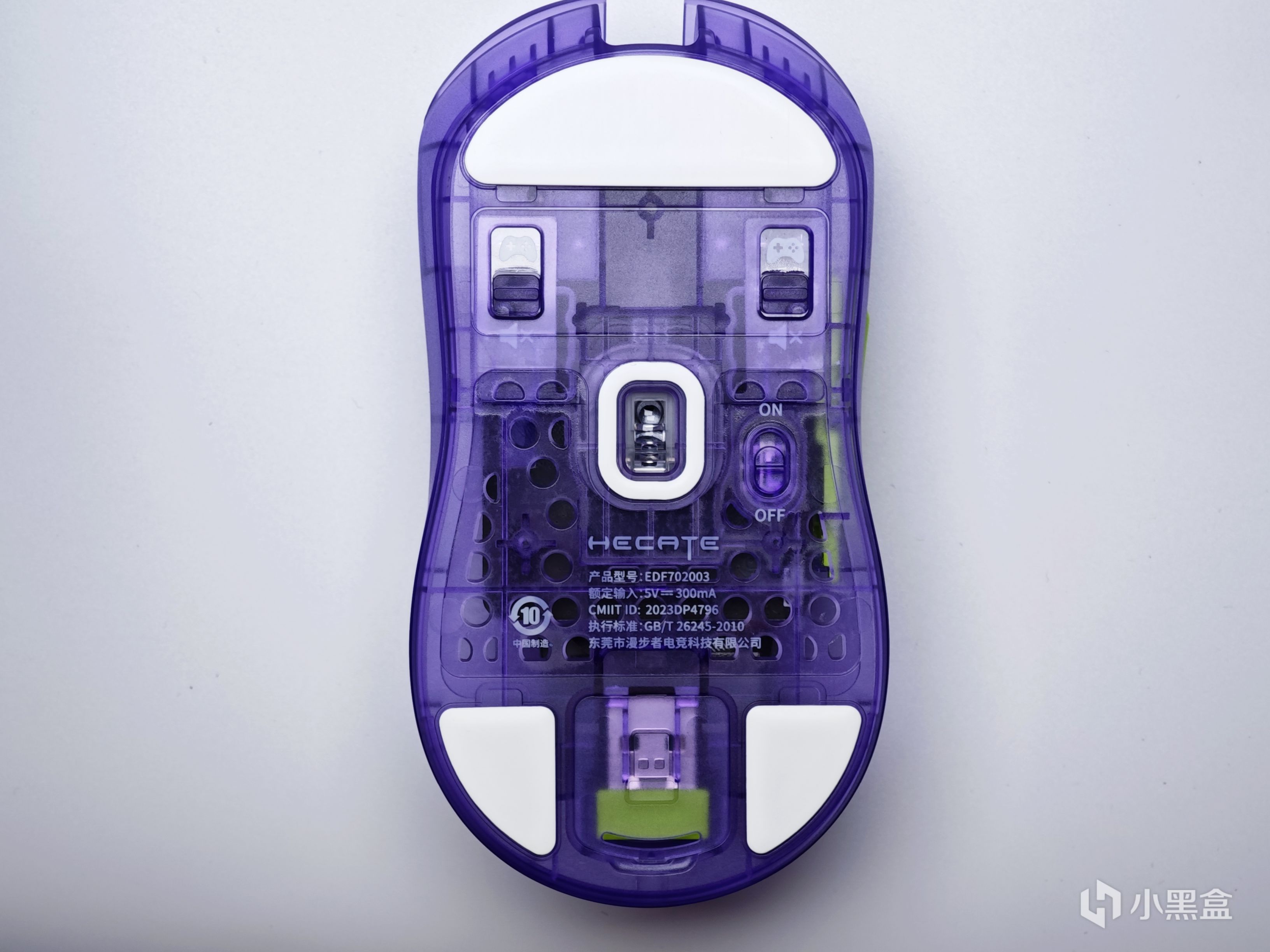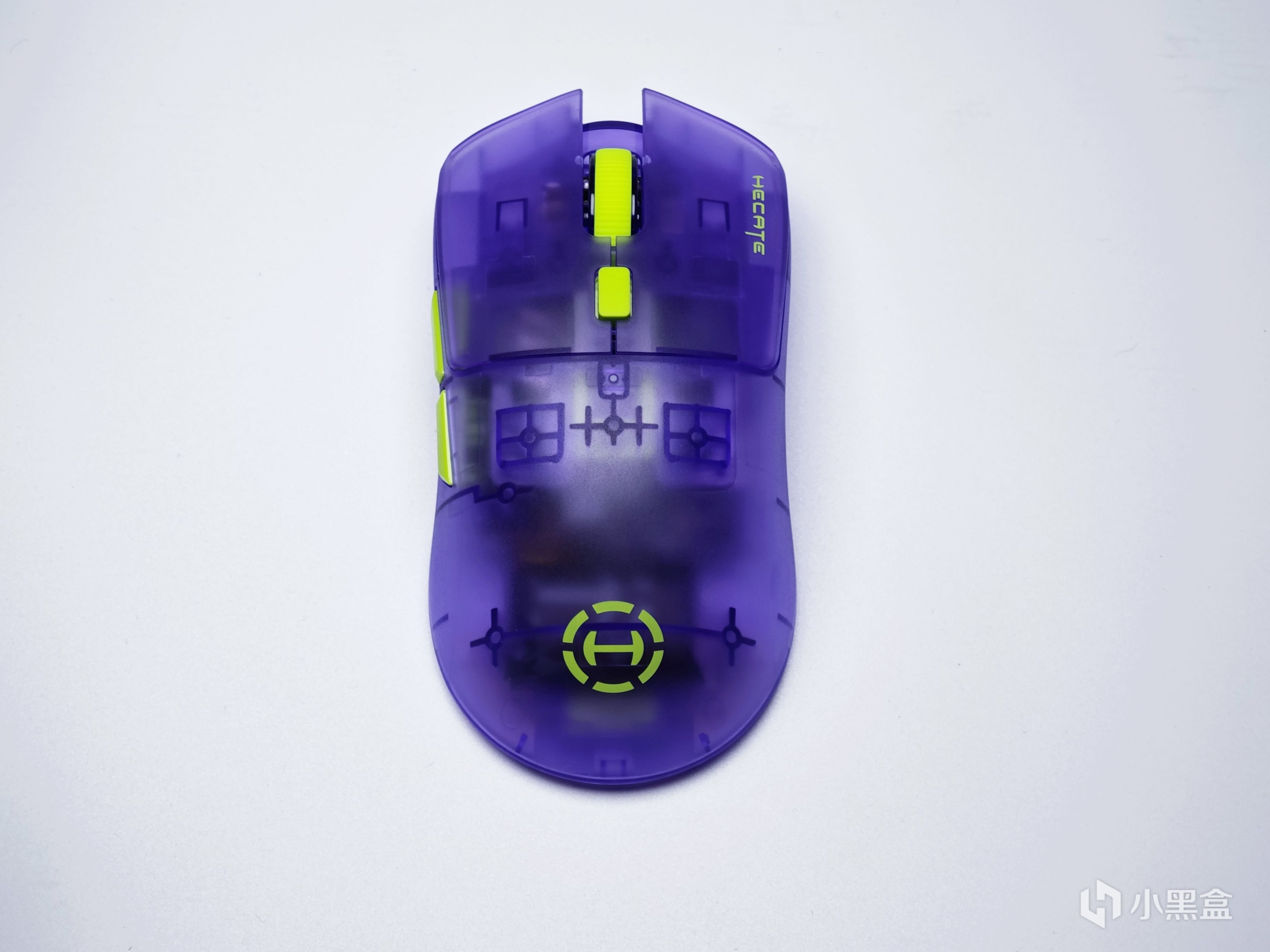 滚轮以及后侧的DPI切换按键都做成了绿色,和鼠标整体采用的半透紫色形成了拼色搭配,虽然官方宣称这款配色为透明紫,不过我个人感觉这款配色更像EVA中的初号机。