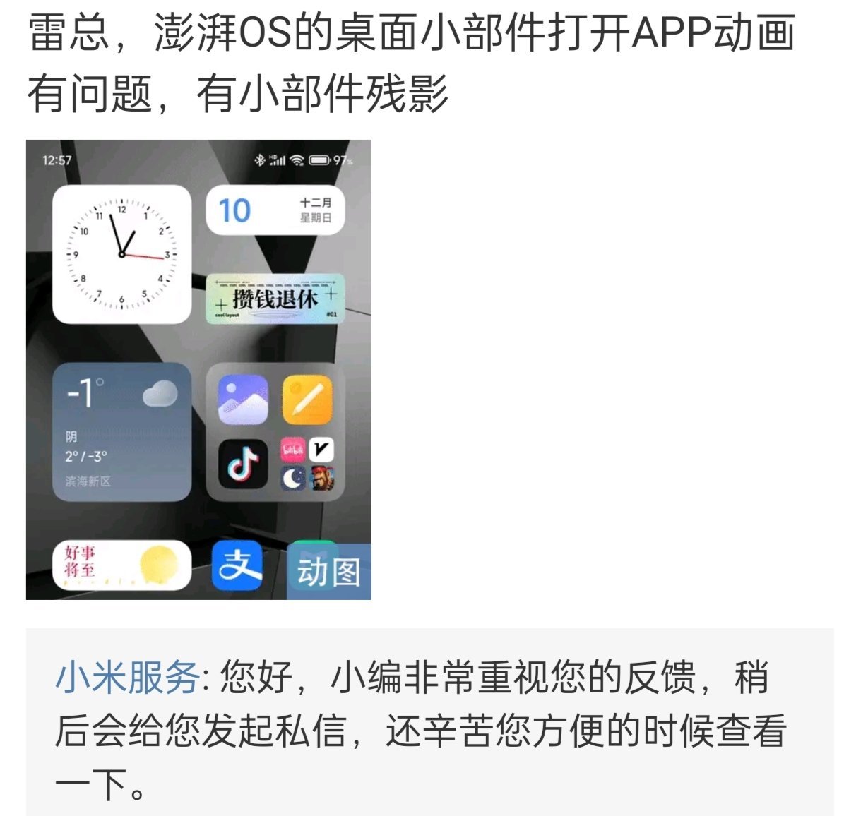 至于大家说说使用体验,虽然说各抒己见,褒贬不一!但对于用户部分问题小米服务热情的给出了一些解决方案私信解决!