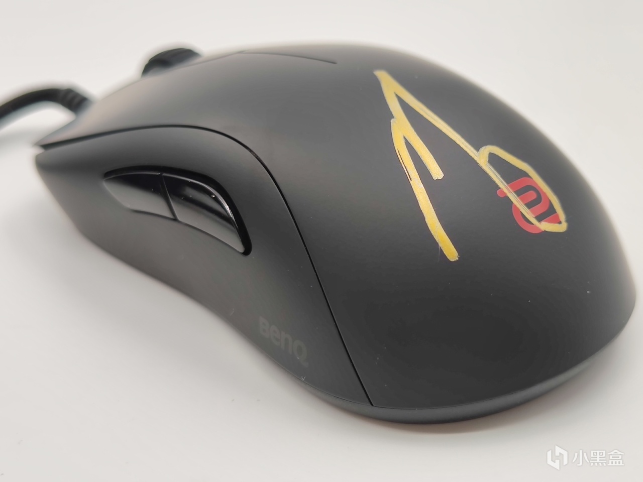 首先最明显的就是这个签名,没错,就是天禄csgo的前队长MO的签名,与其他联名款不同,这只鼠标的签名是亲签,也就是独一无二的。