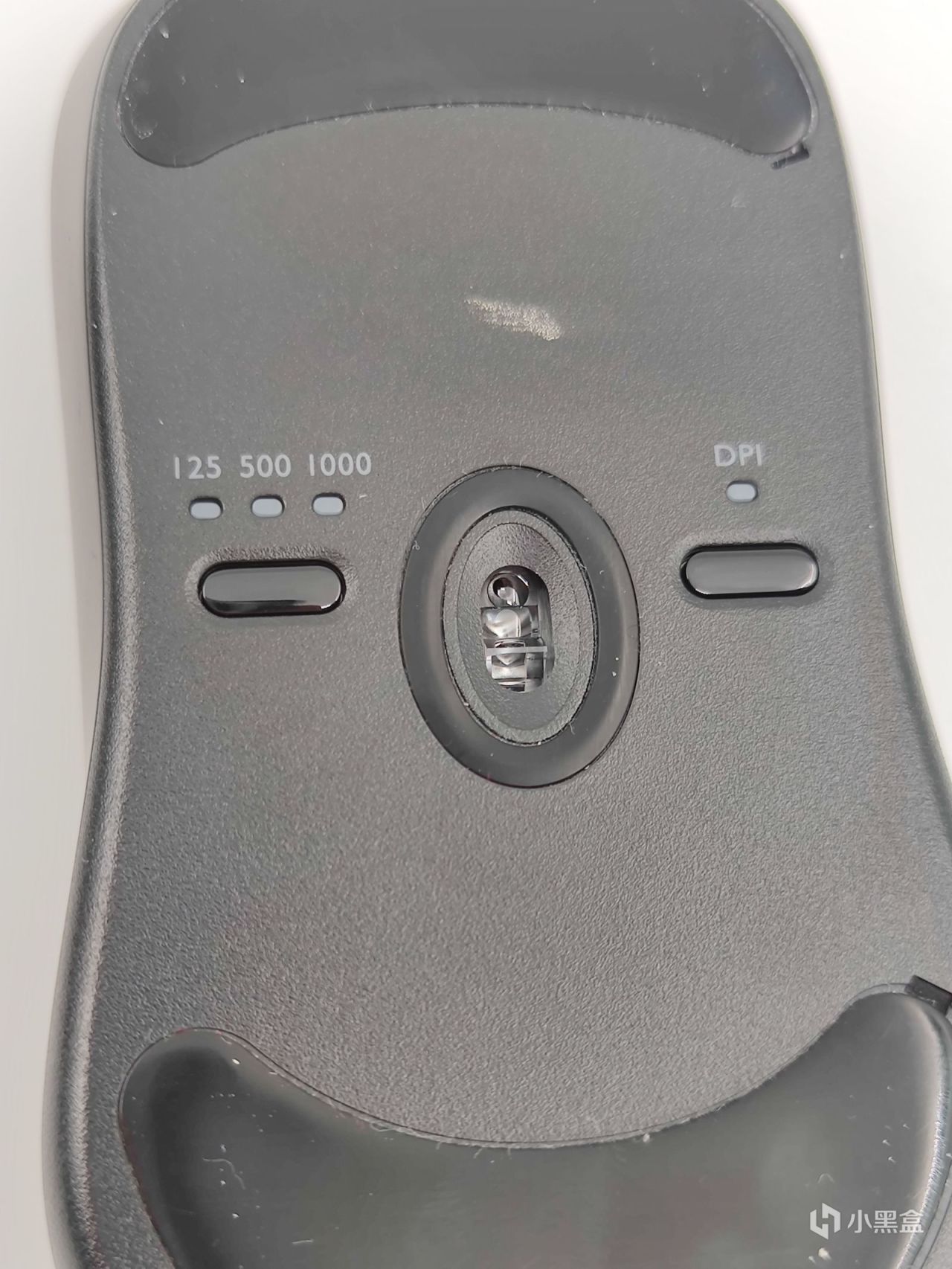 鼠标的底部的脚贴滑动起来也非常顺畅,不会刮擦桌面。并且底部还有dpi调节键和回报率调节键。没错,这只鼠标不需要驱动,即插即用。可以通过鼠标底部的按钮调节DPI和回报率,灯光颜色会随之变化,方便识别。