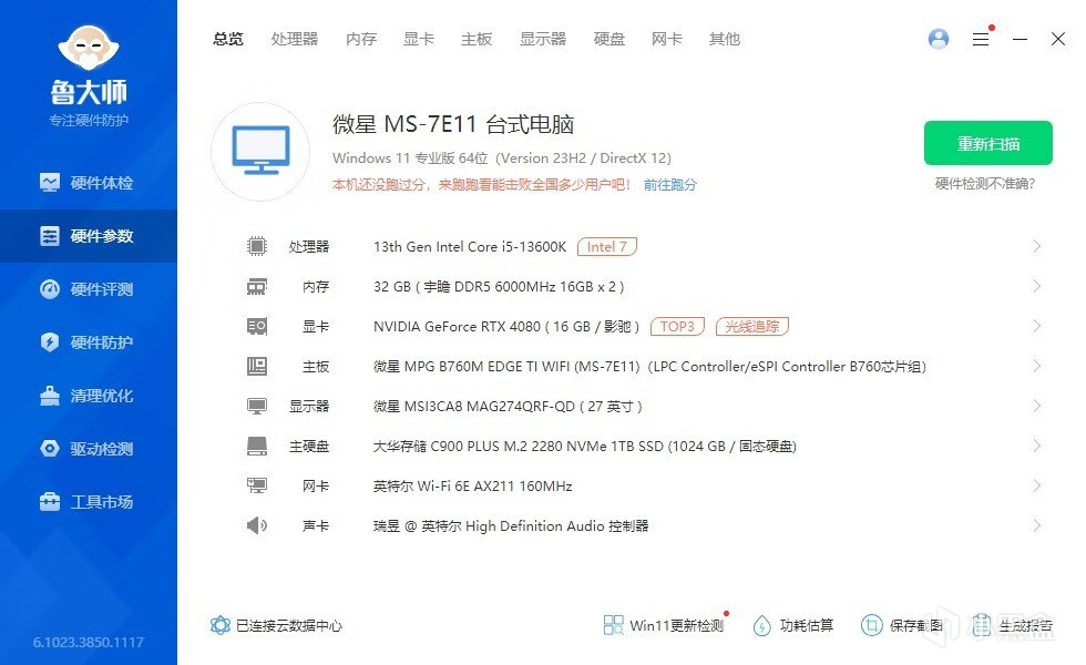 ▼蘑菇这里准备了一套13600K搭配微星B760M刀锋主板的配置,显卡是影驰的RTX4080星耀OC,这套硬件非常强!