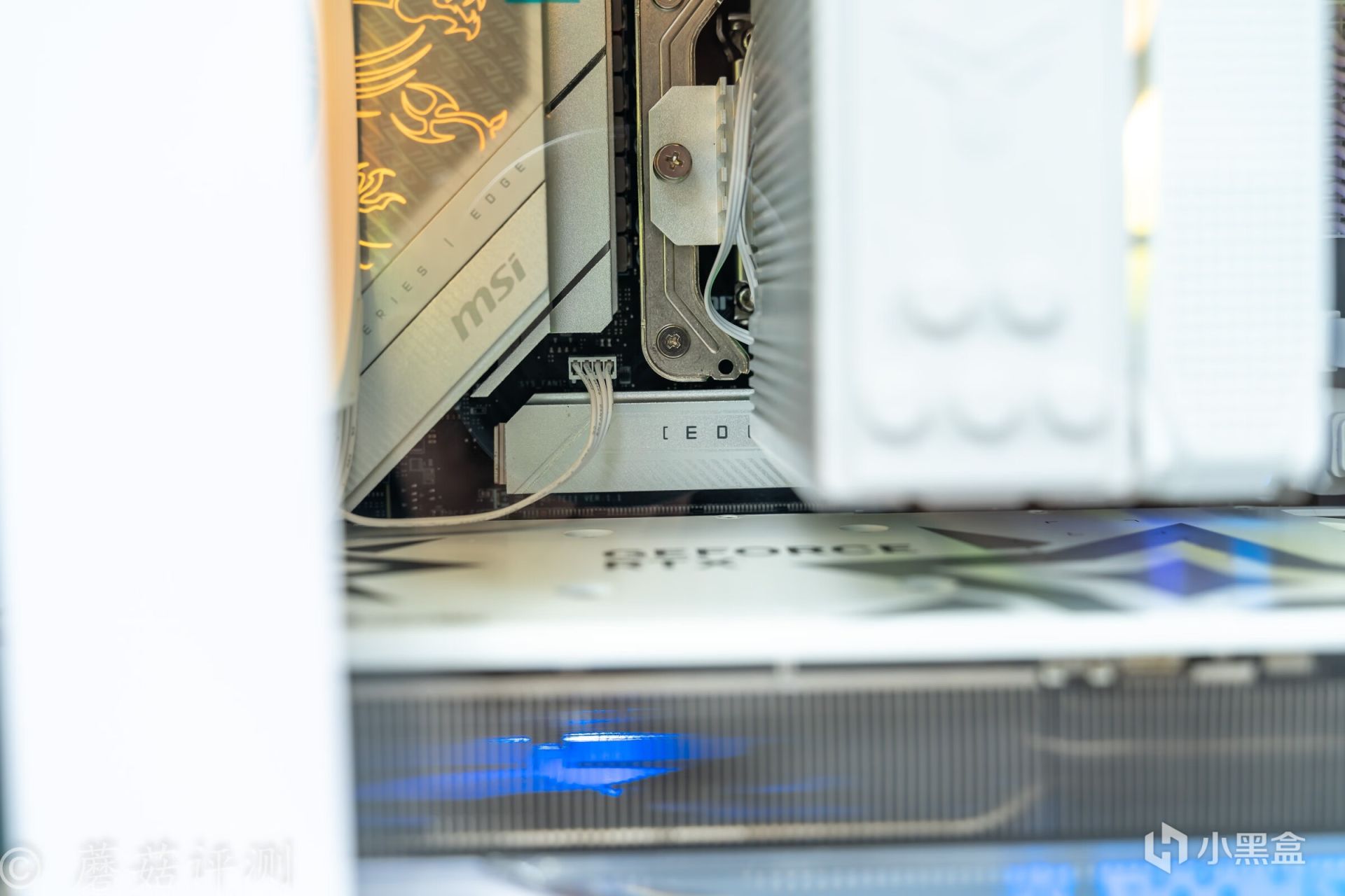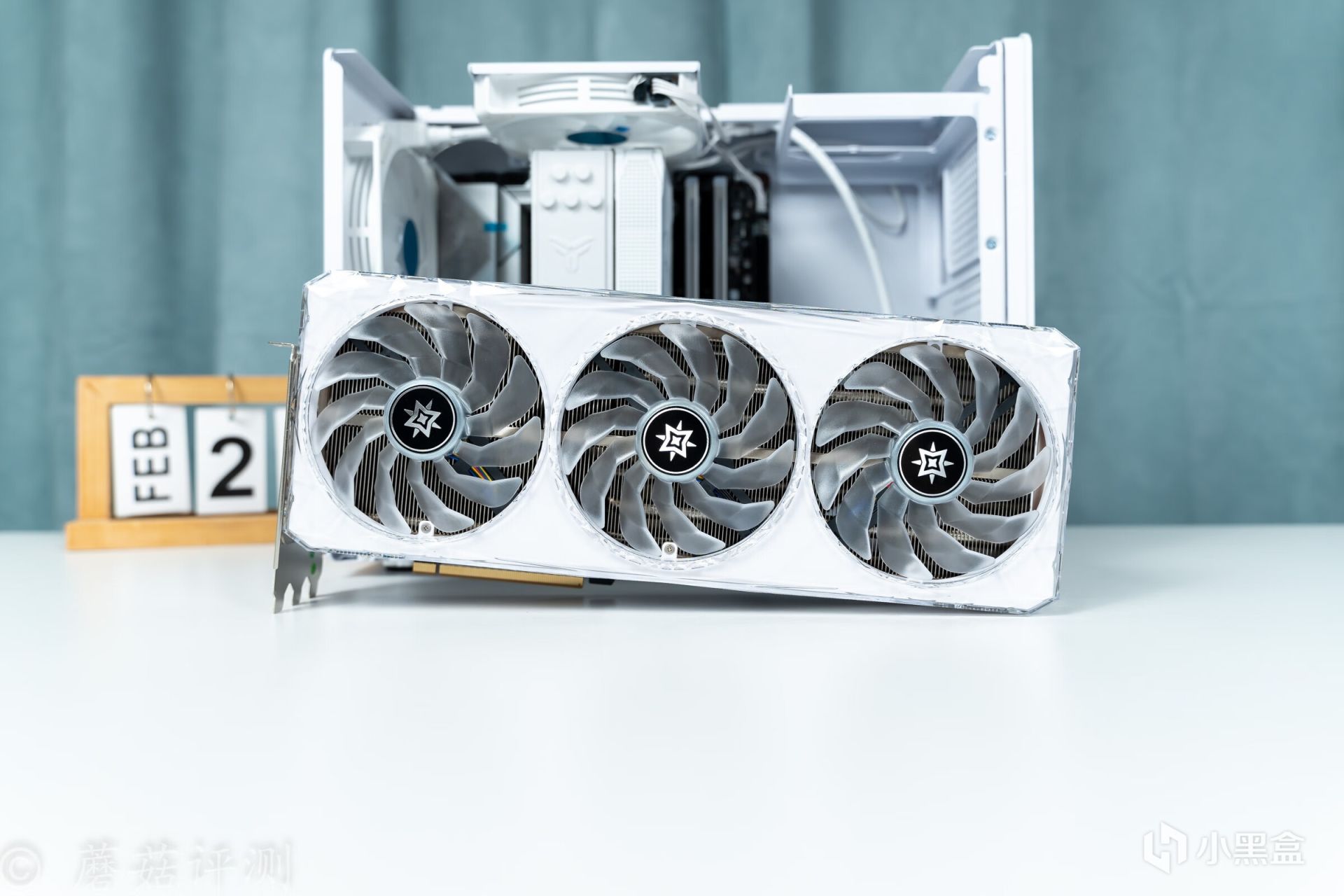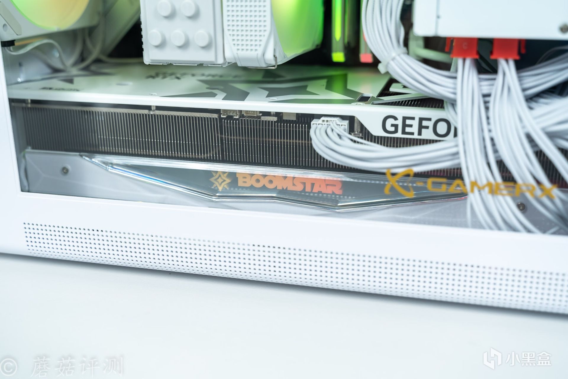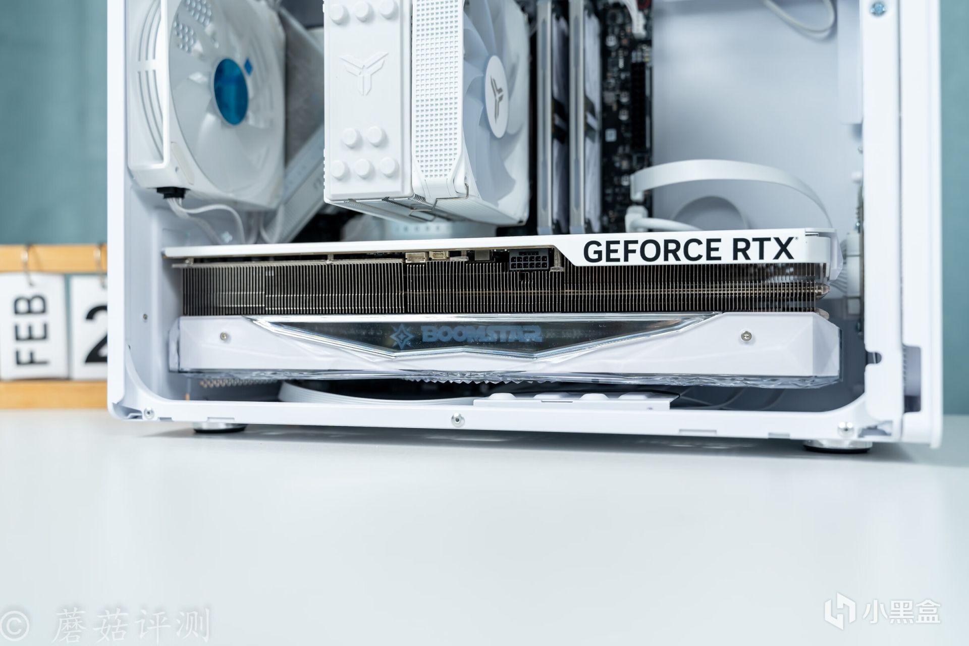 ▼显卡是影驰的RTX4080星耀OC,这款显卡的颜值也非常漂亮,侧面和正面均支持ARGB灯效。另外,这张显卡的长度352mm,基本上就是这款机箱能塞进去的最长的显卡了。