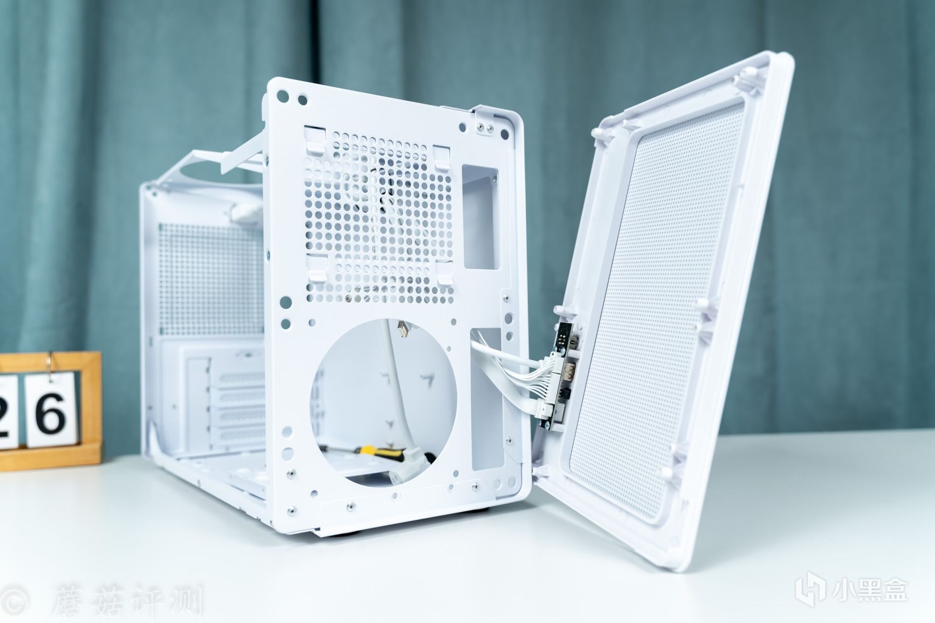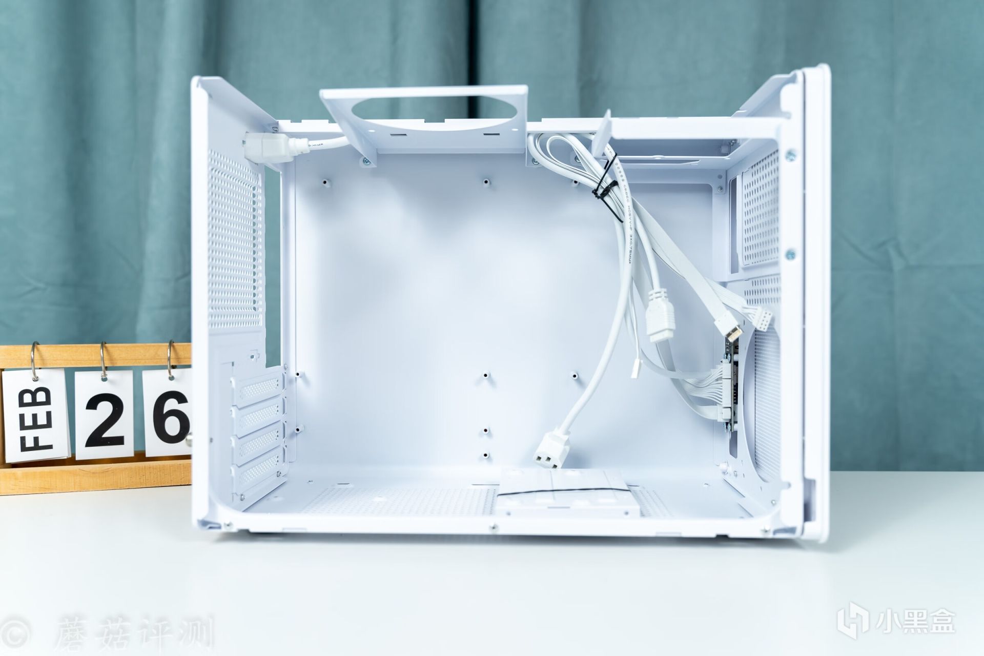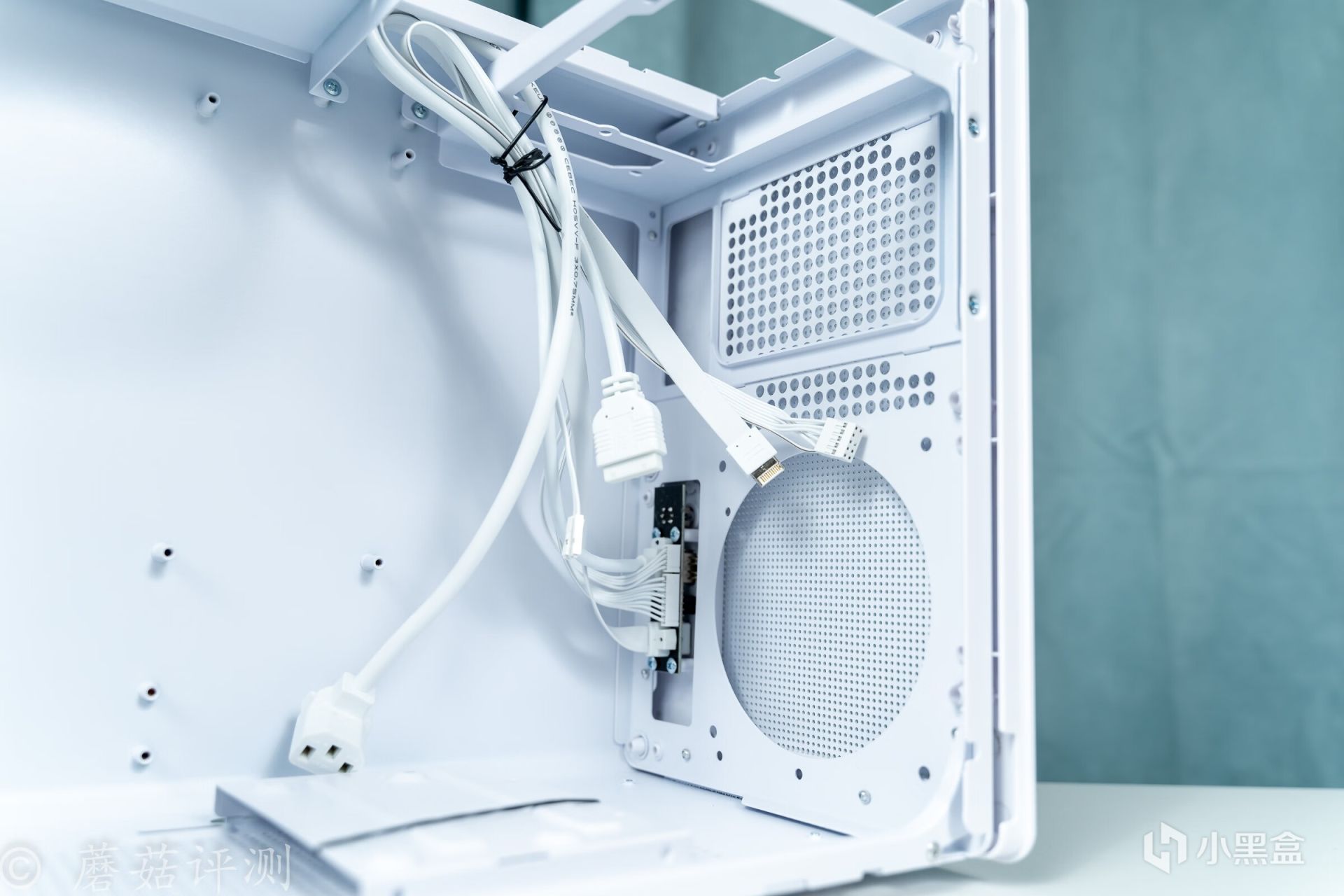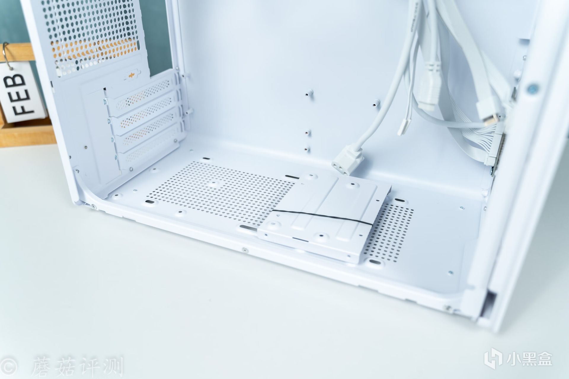 在散热方面,这款机箱的表现还不错。不过,根据蘑菇的实际体验来说,最高是把机箱的风扇装满,前部和底部进风,上部和后部出风,这样整体的散热表现会很不错。