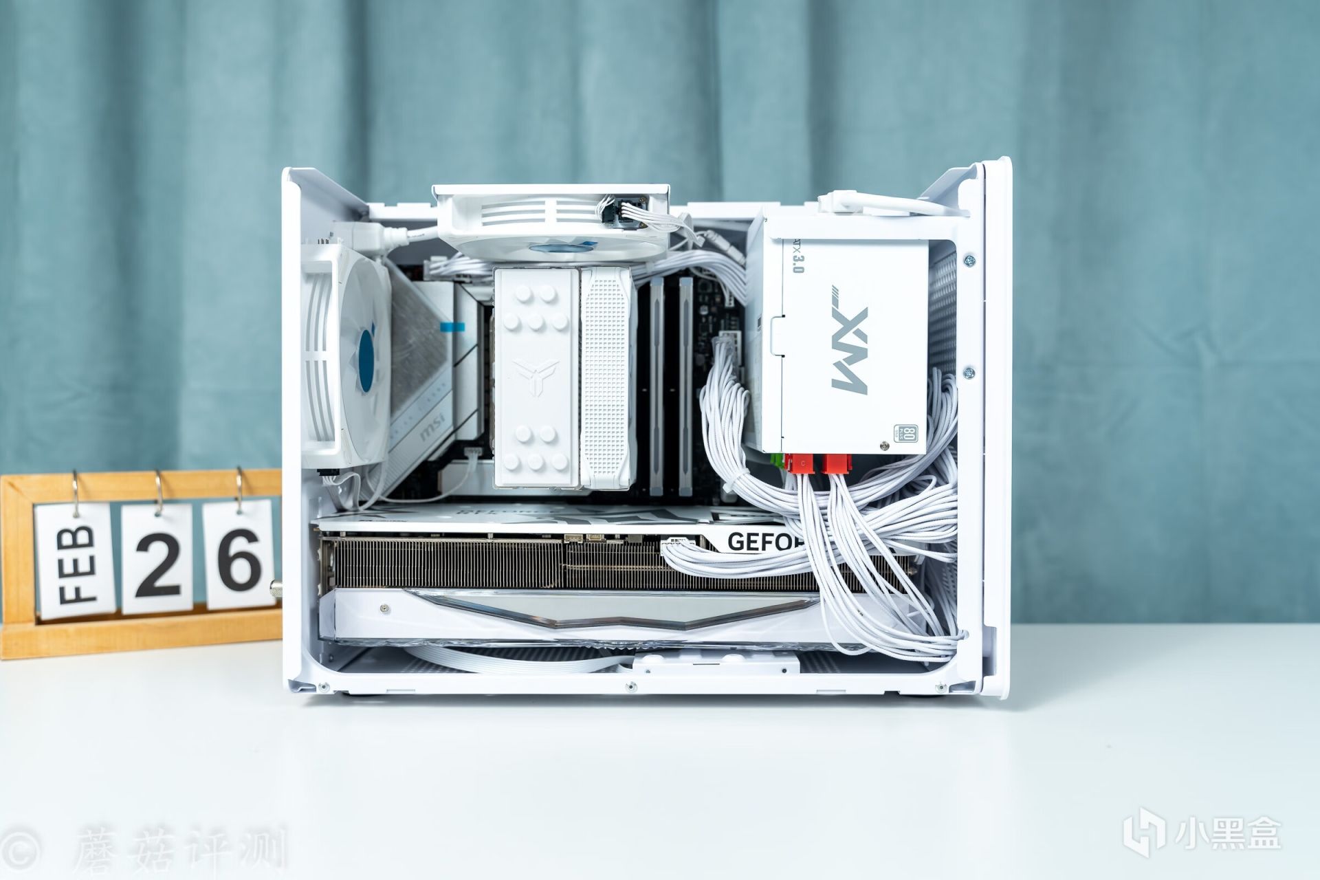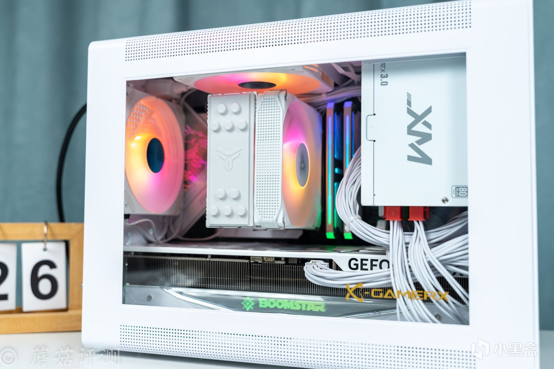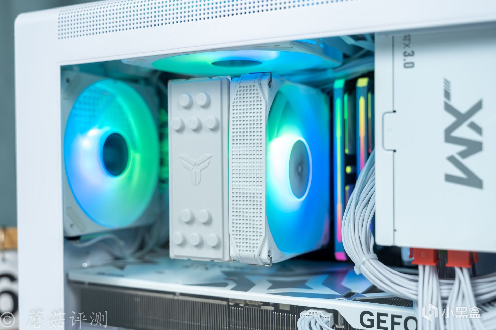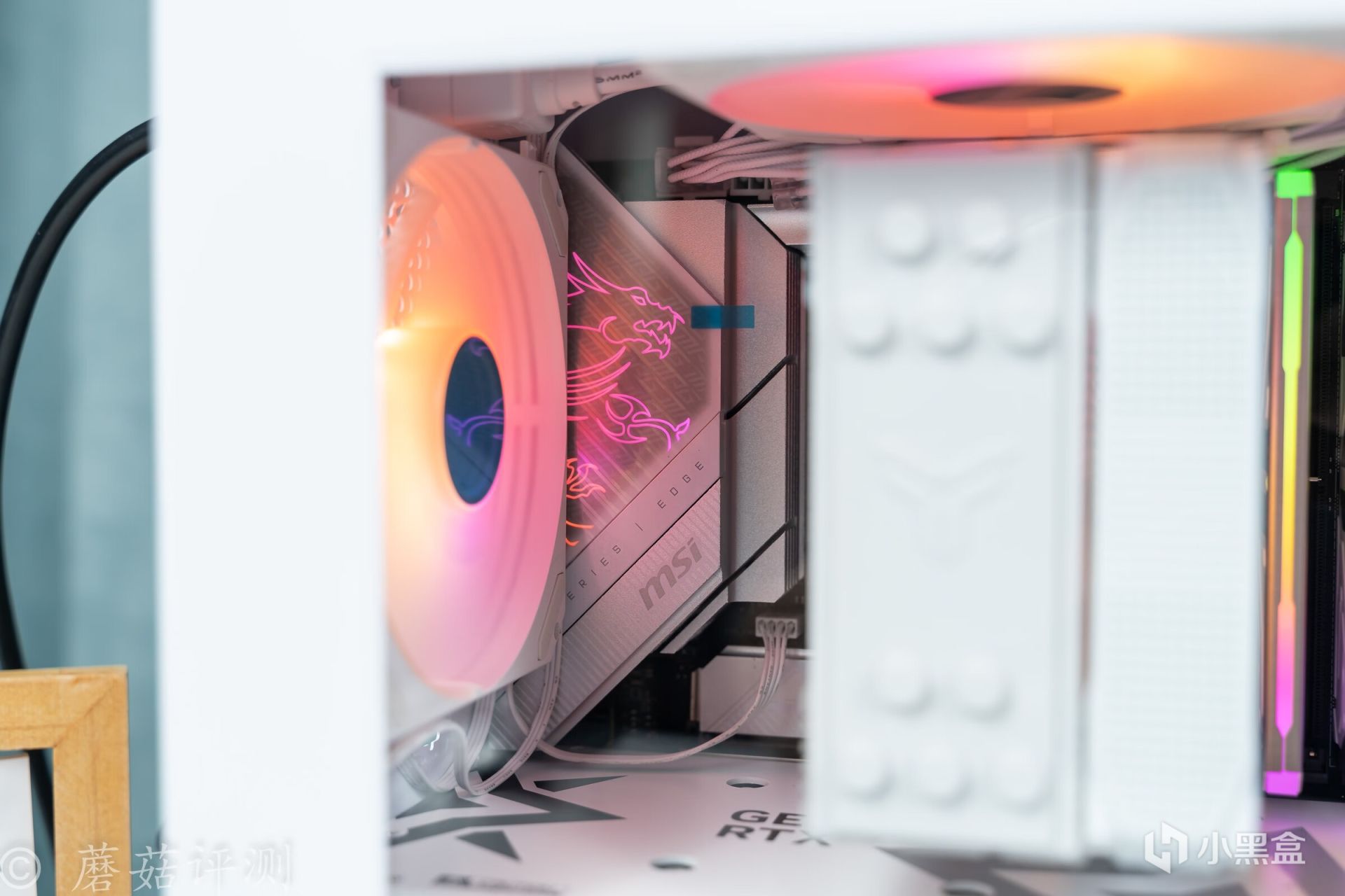在散热方面,这款机箱的表现还不错。不过,根据蘑菇的实际体验来说,最高是把机箱的风扇装满,前部和底部进风,上部和后部出风,这样整体的散热表现会很不错。