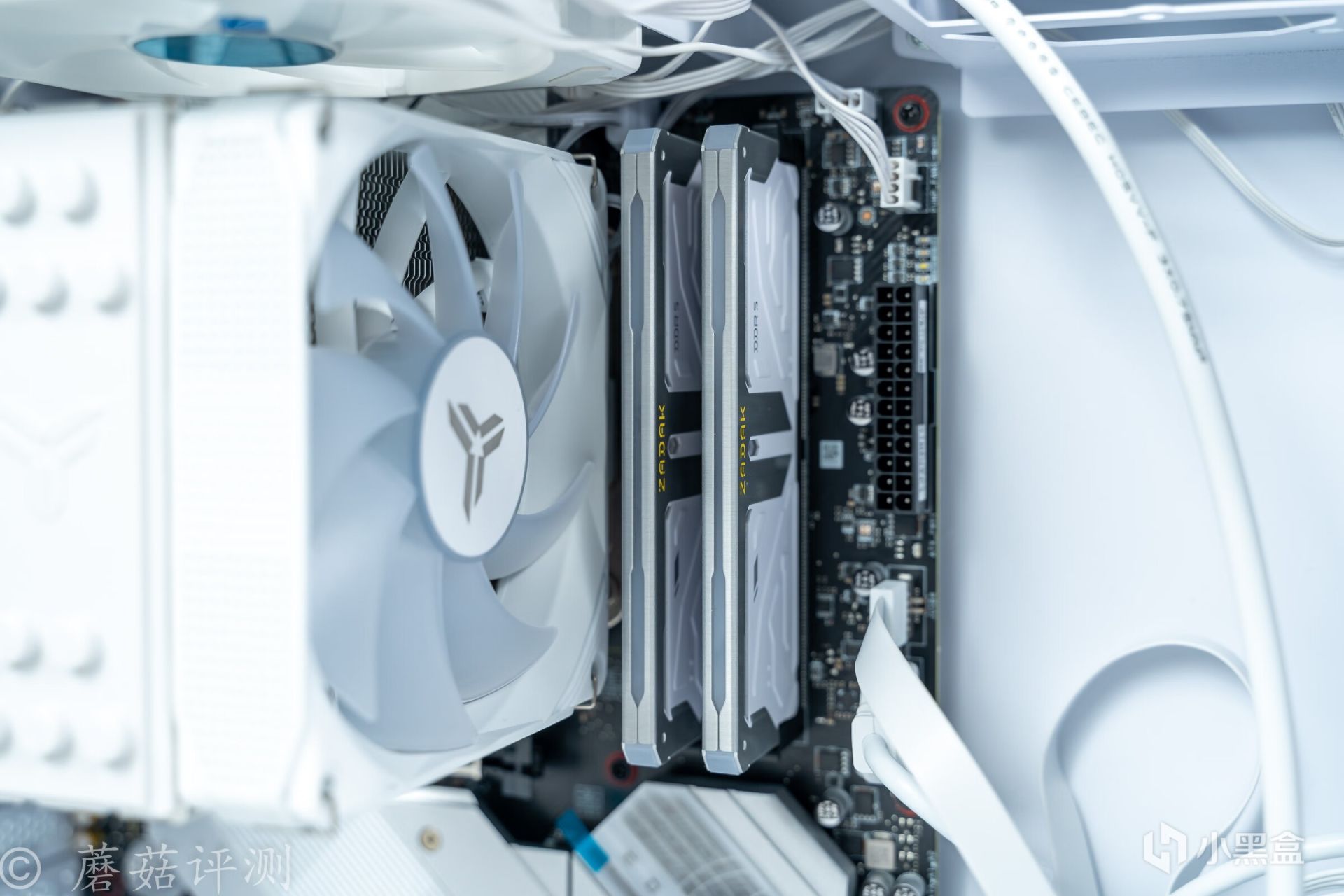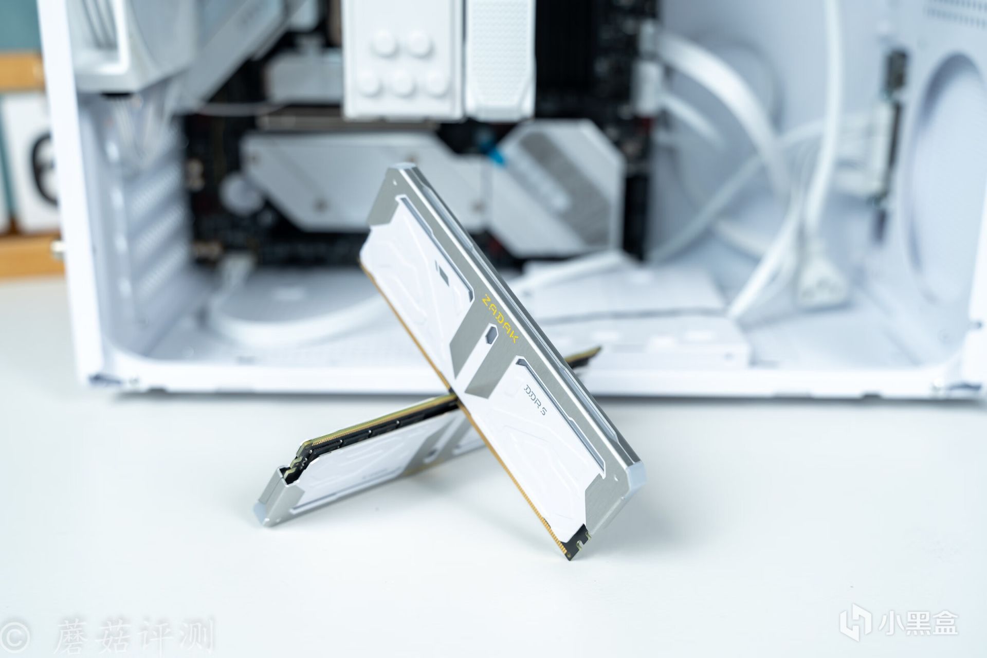 ▼内存选择宇瞻的ZADAK的SPARK,16GB*2 6000MHz,这套内存的颜值非常漂亮,内存的金属马甲采用撞色设计,侧面是白色的,顶部是银色的。