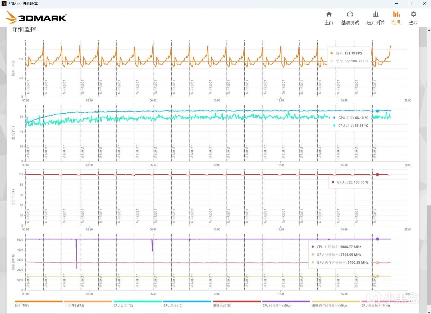 ▼跑个3Dmark的压力测试,TS模式,帧数稳定率在98.6%,稳住了。