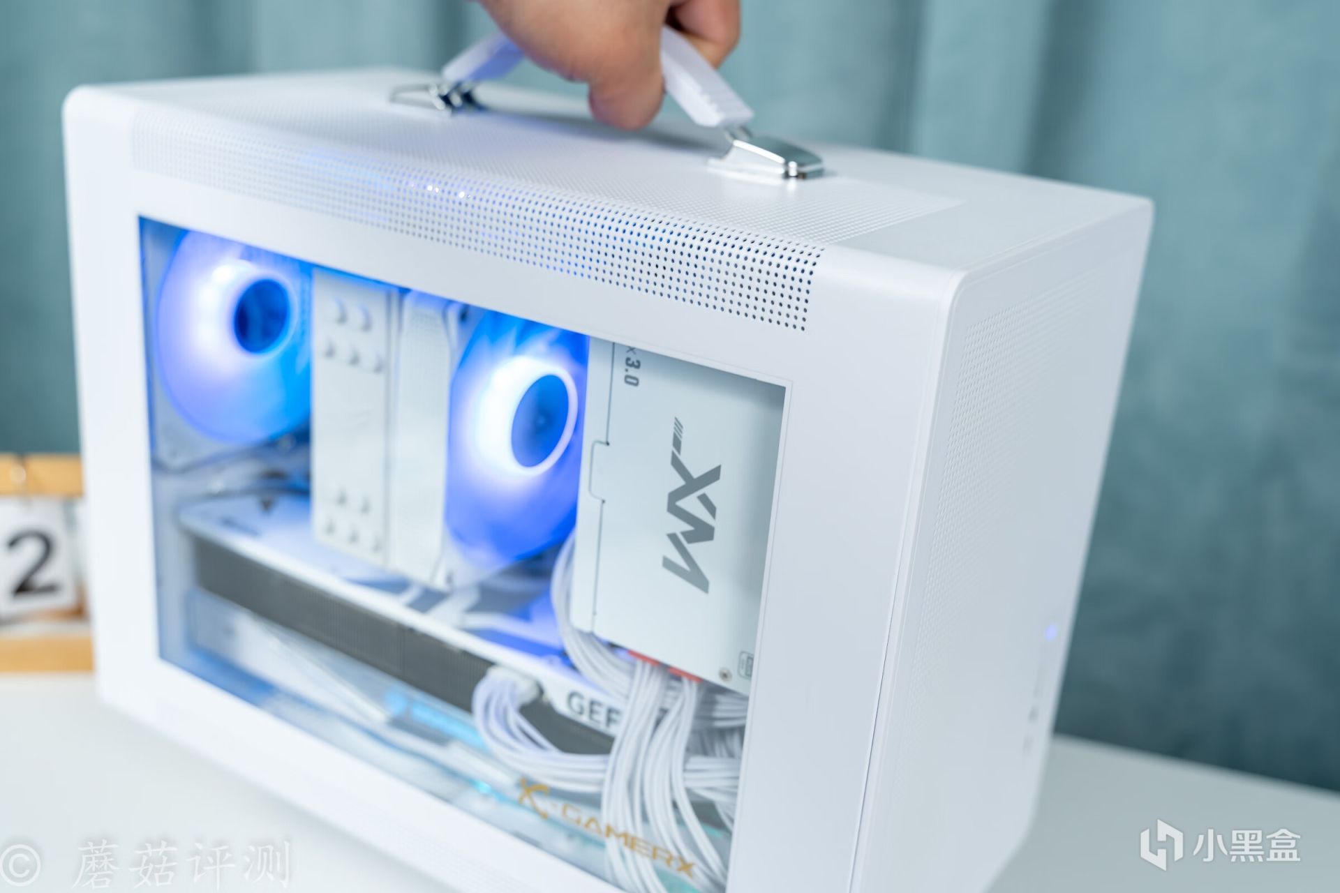 ▼对了,聊了这么多最后再提一句,这是一台可以手提的机箱哦,里面塞了一套13600K+RTX4080的钢炮配置哦,很强力。