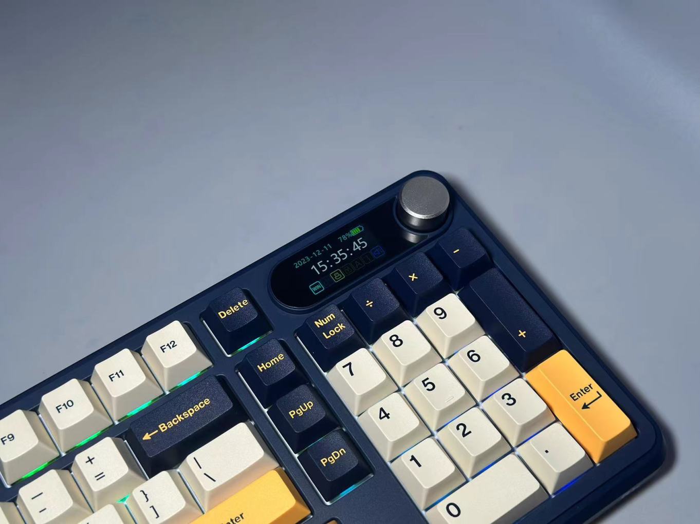 S98和命名一样采用98%配列布局,整体键盘为深色系列,键帽采用三拼色。让整把键盘质感提升的非常大。而目前主流的彩屏以及旋钮,S98也是给配备啦。