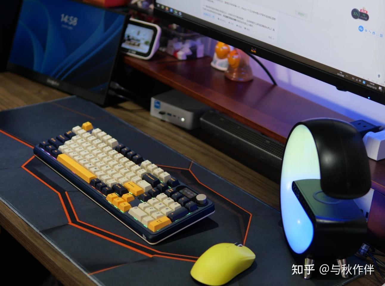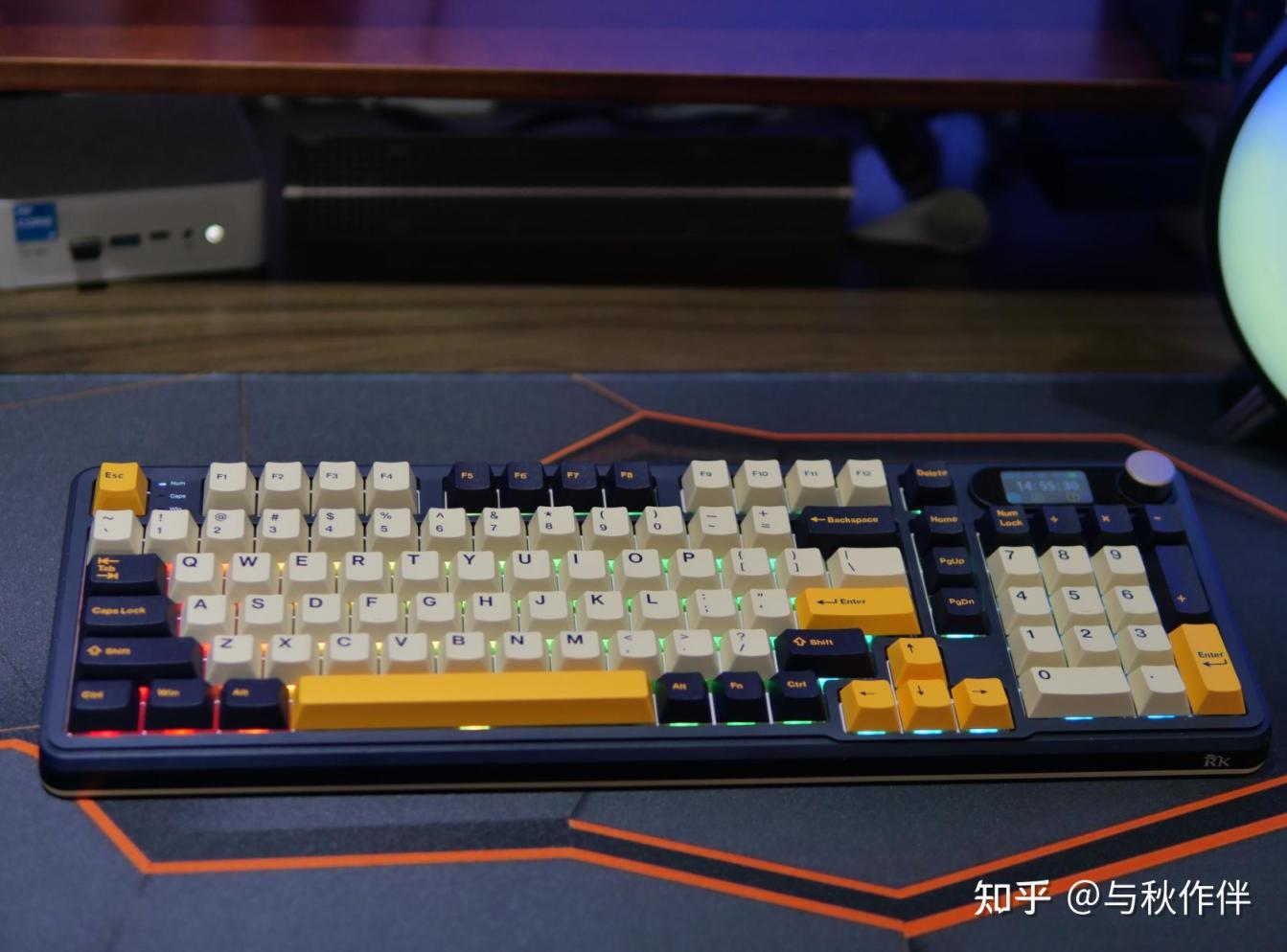 右上角可以算是这把键盘的主要卖点所在了,一来是表冠级手感的金属玄旋钮,还有1.47寸的超大TFT屏幕。
